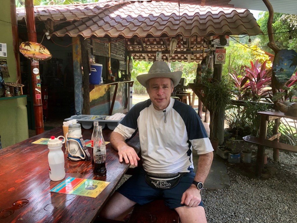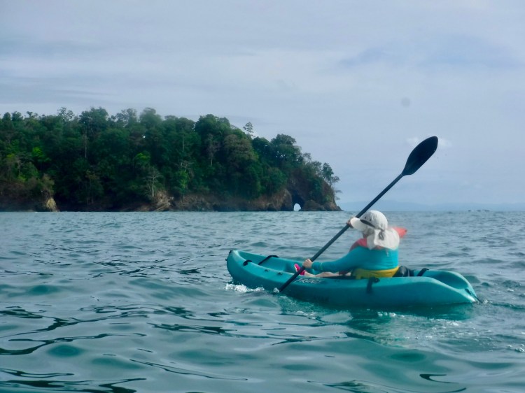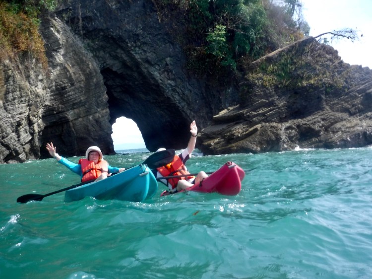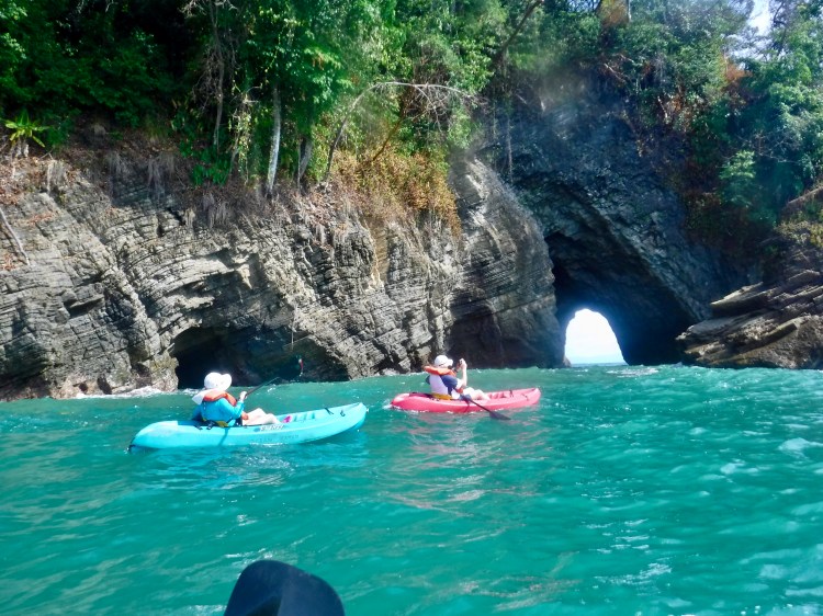 On day three we headed over to Dominical for the first organized tour of our trip – an ocean kayak to see some caves with http://pineapplekayaktours.com. We arrived a bit early so we could walk around and maybe do a bit of shopping. Mike needed a hat and didn’t want to spend much on it, and eventually settled on a woven cowboy style hat. There was only one store on the main road and then some vendor’s stalls down closer to the beach. I picked up three cute dresses for our granddaughters. (fourth grand-daughter wasn’t born yet)
