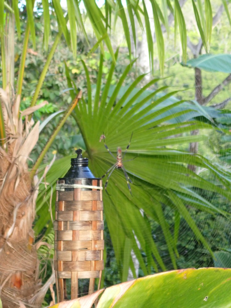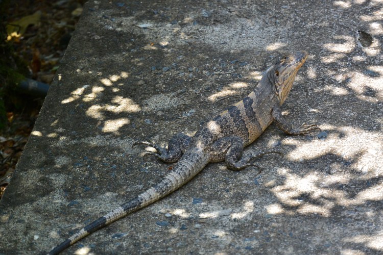 Not only did we see animals on this trip that were new to us, but also spiders and bugs. I’m not a big bug fan but took the opportunity to learn about them. We saw several Orb Spiders which make their webs with extremely strong silk. There were also a fair number of Cicadas. They are quite large – about 4 cm in length. We found this little Walking Leaf Katydid on our table. This is a tropical region so it is unavoidable. We also saw lots of Basilisks and Iguanas.