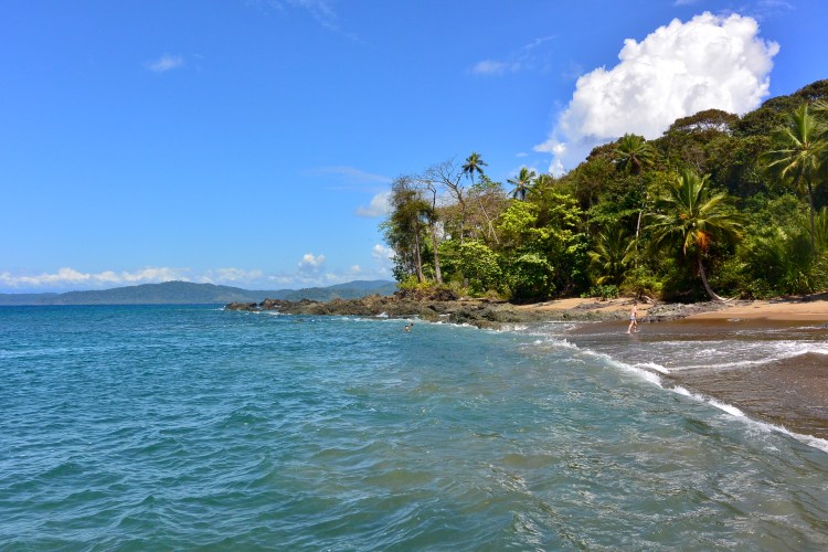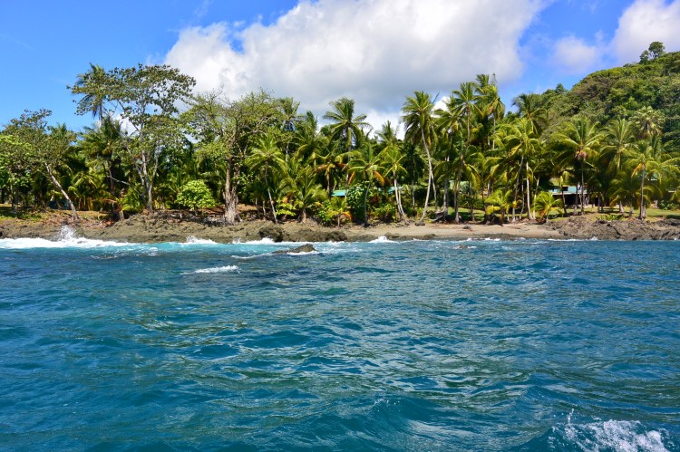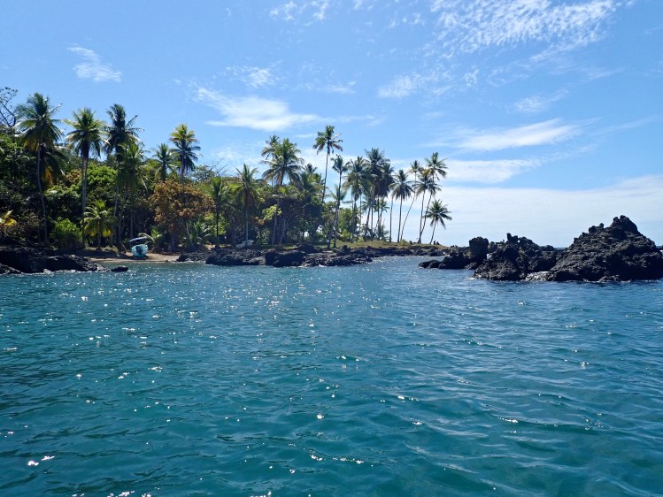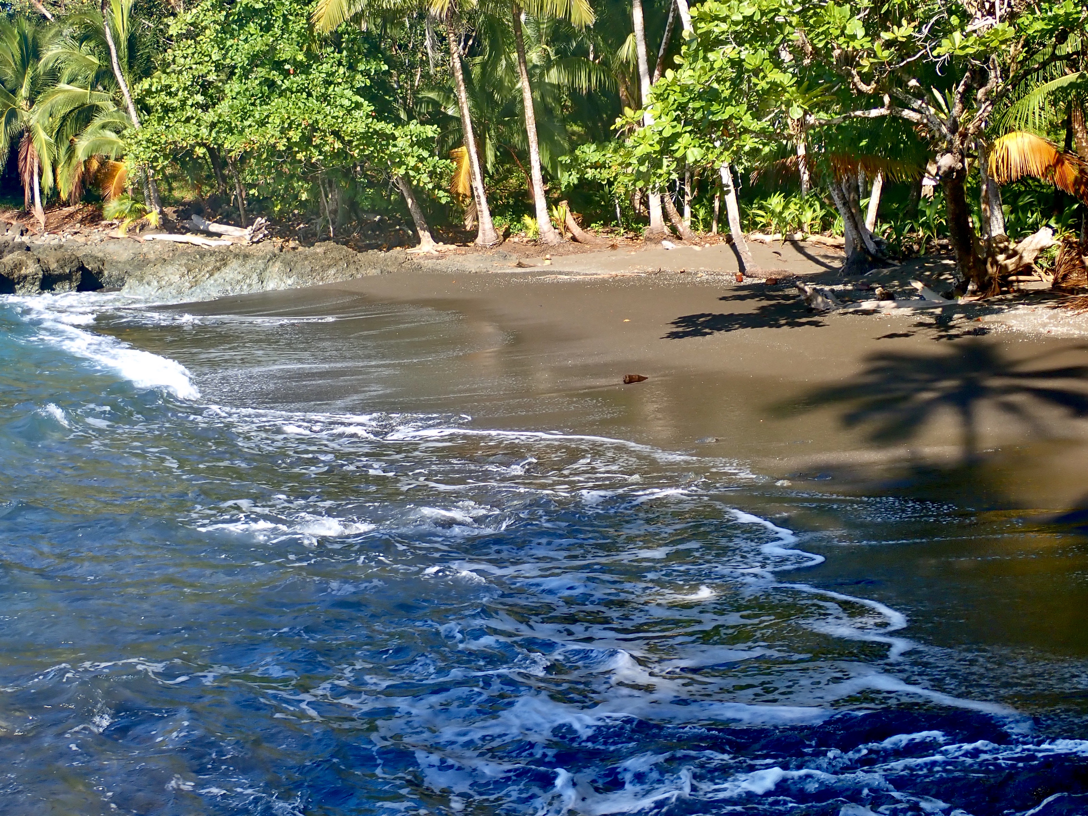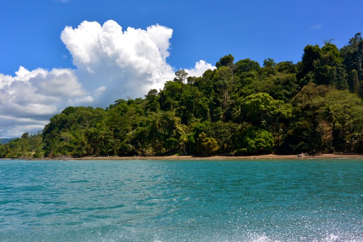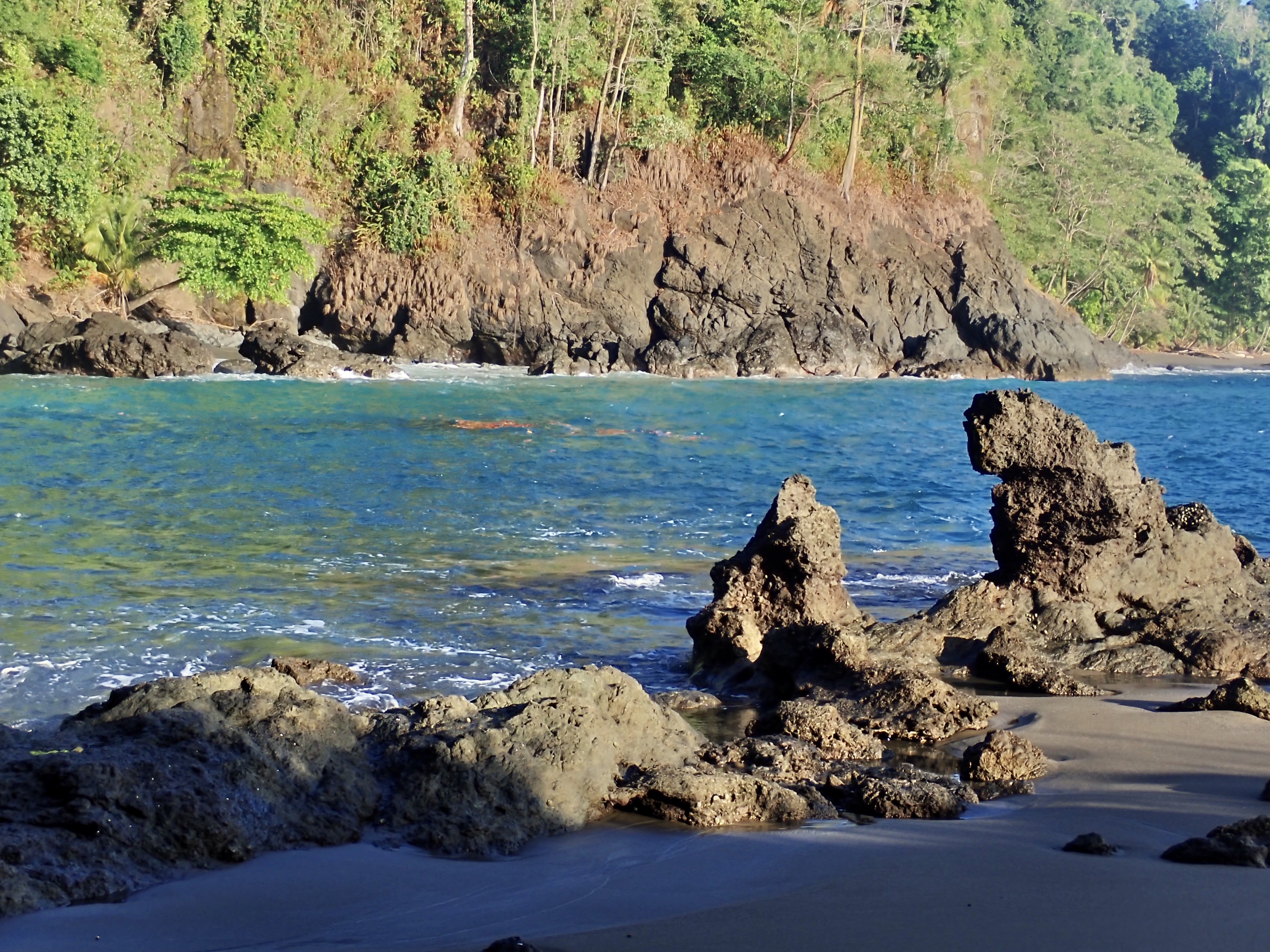 We put our backpacks and suitcases in garbage bags to keep them dry just in case it rained and because we would be doing a wet landing. Shortly after getting out into the ocean we made our first stop at Drake Bay. The boat was backed into the beach and most of the people got off there.