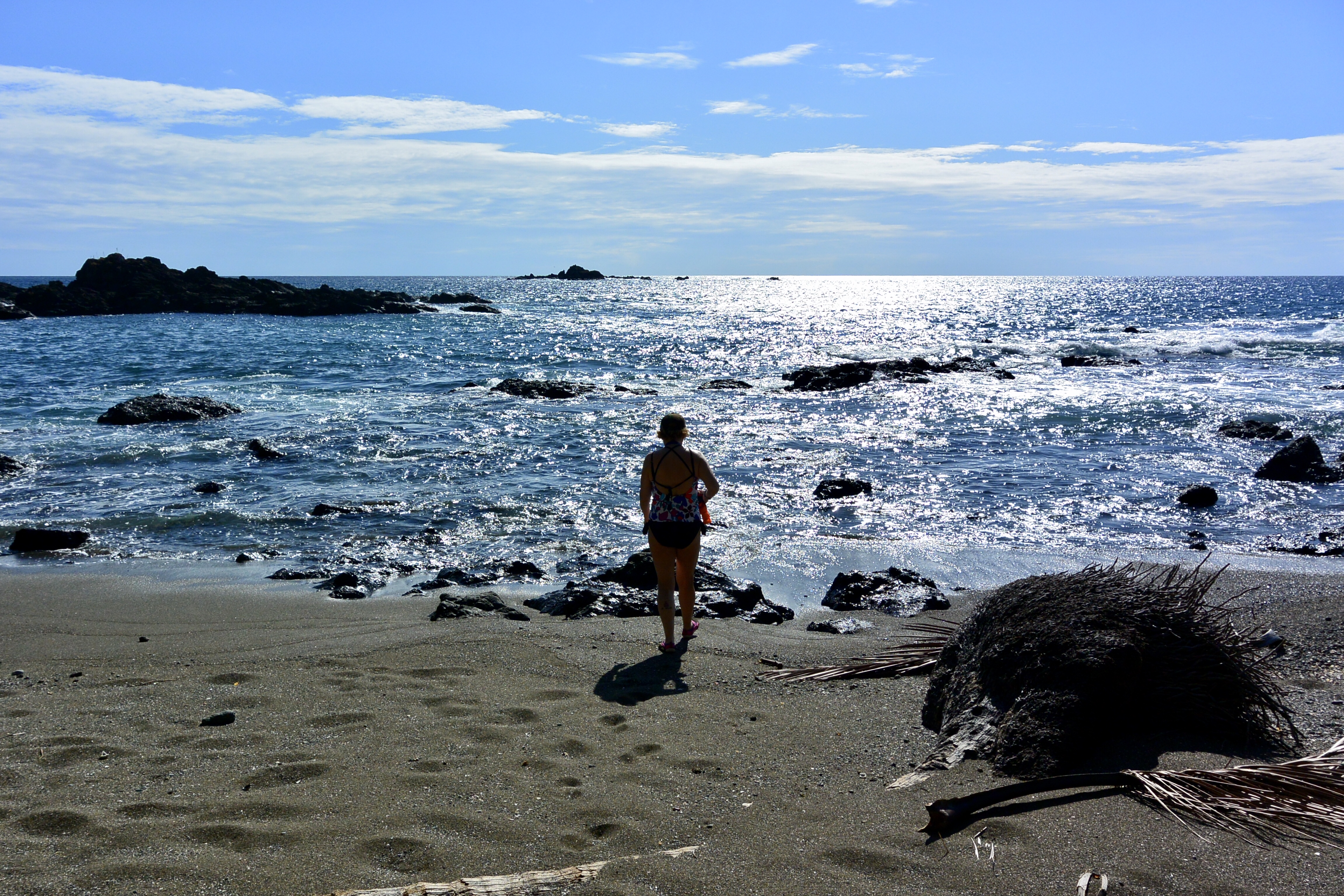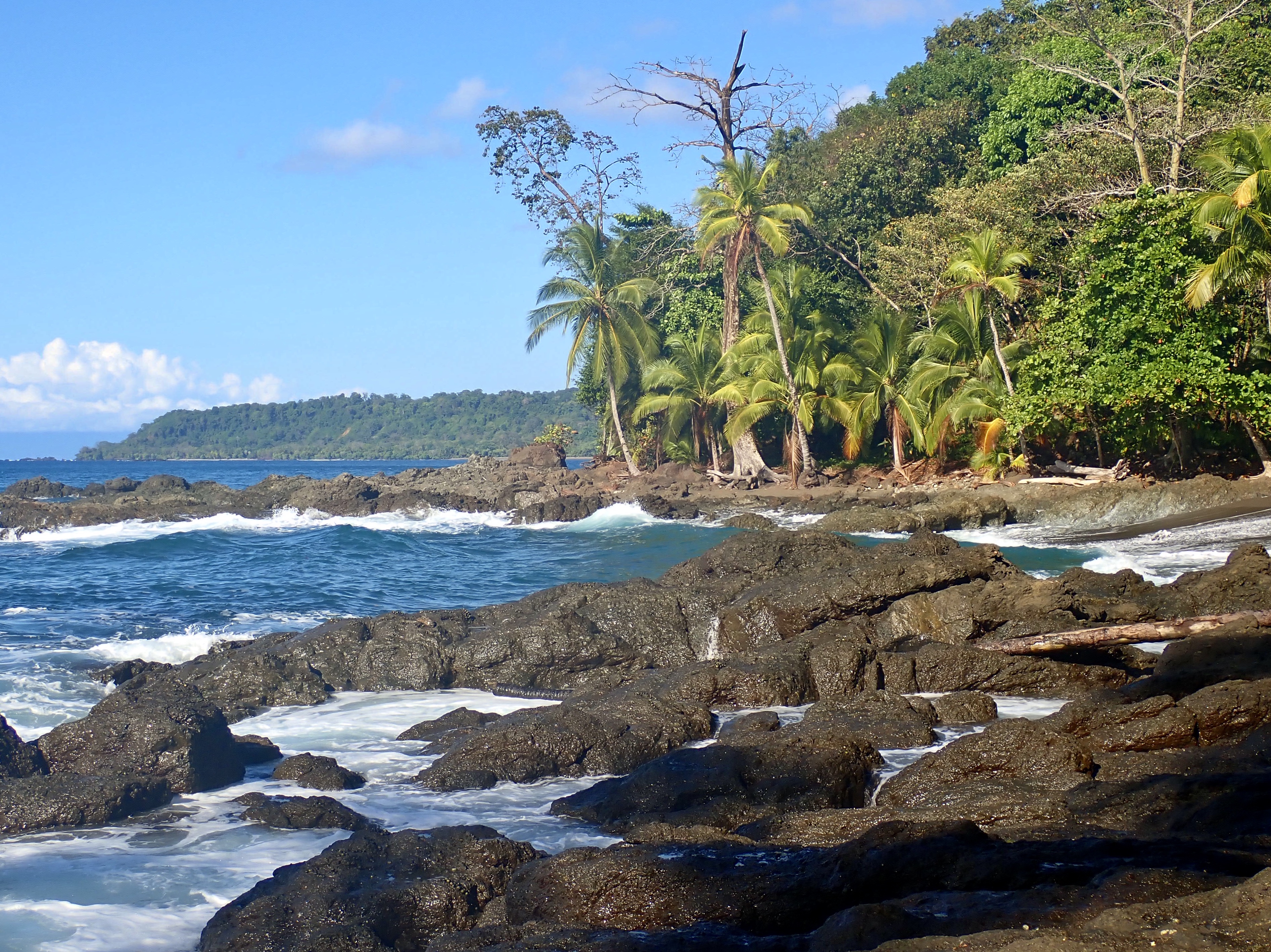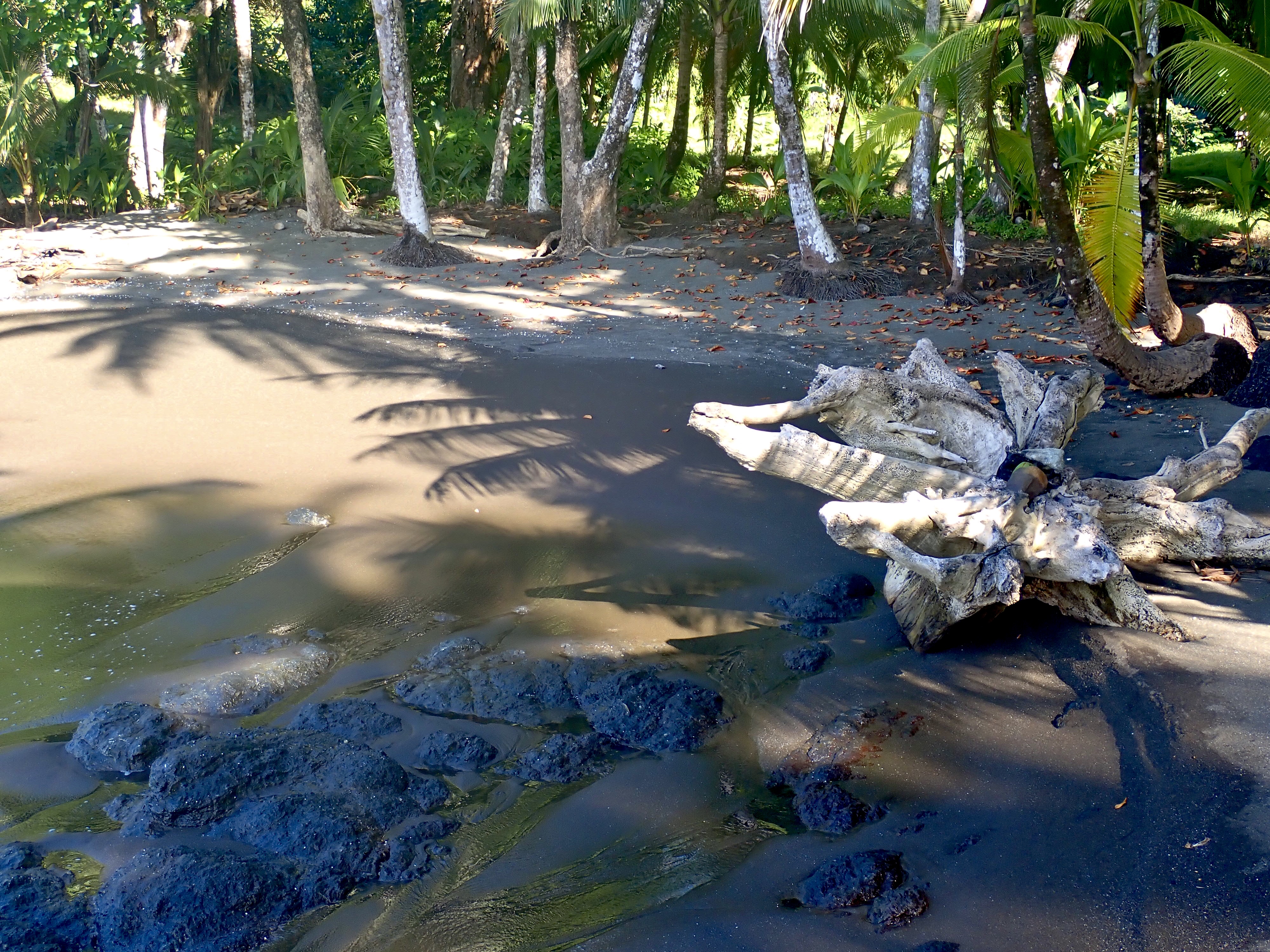 We put our backpacks and suitcases in garbage bags to keep them dry just in case it rained and because we would be doing a wet landing. Shortly after getting out into the ocean we made our first stop at Drake Bay. The boat was backed into the beach and most of the people got off there.