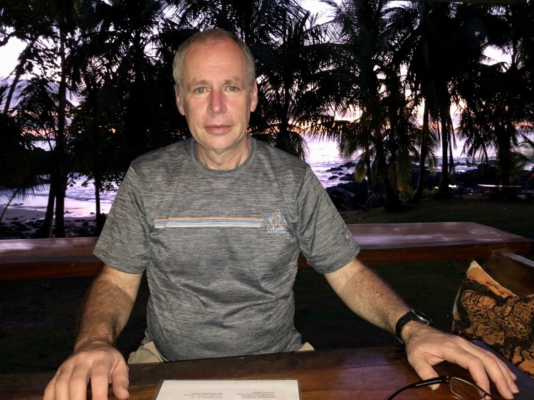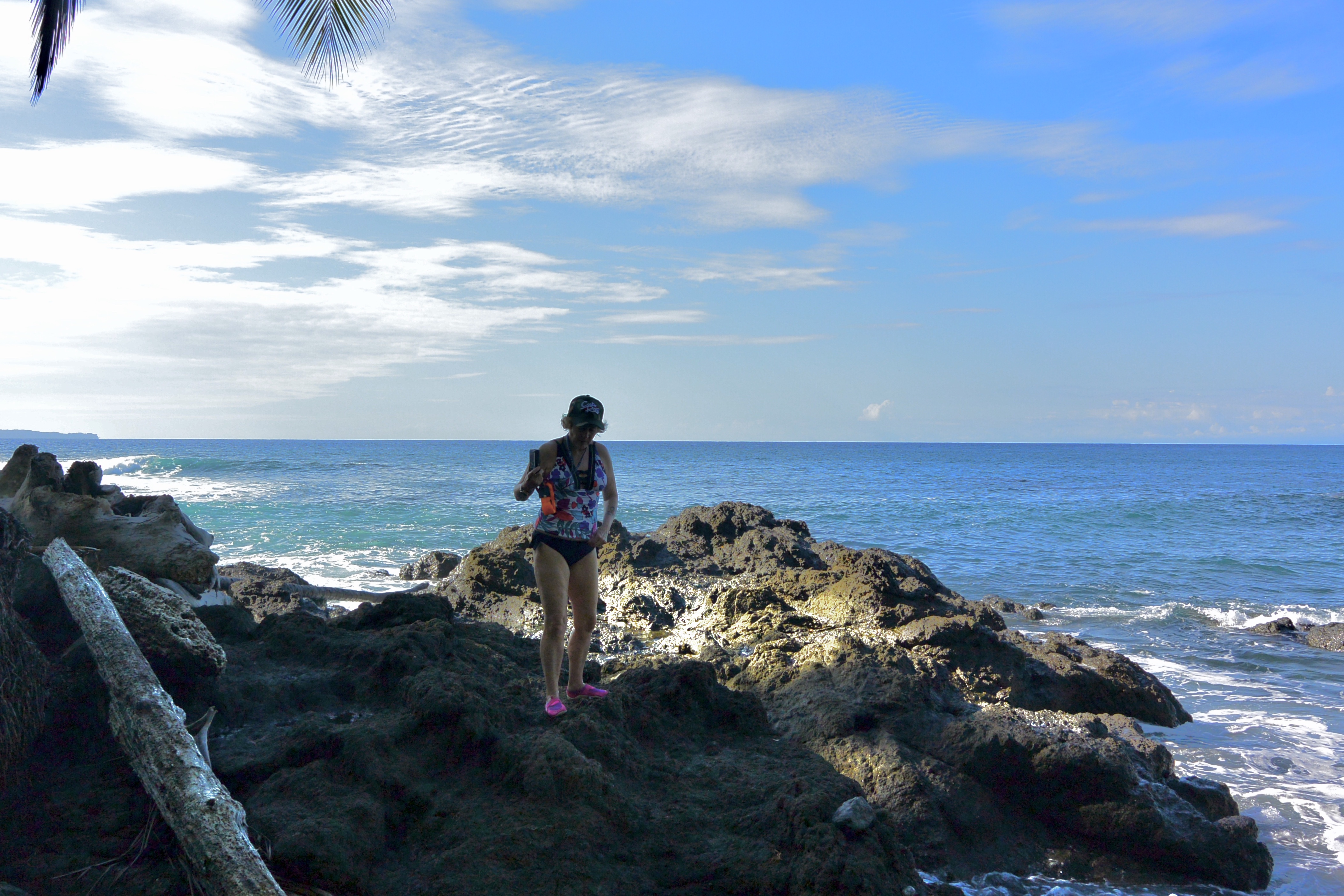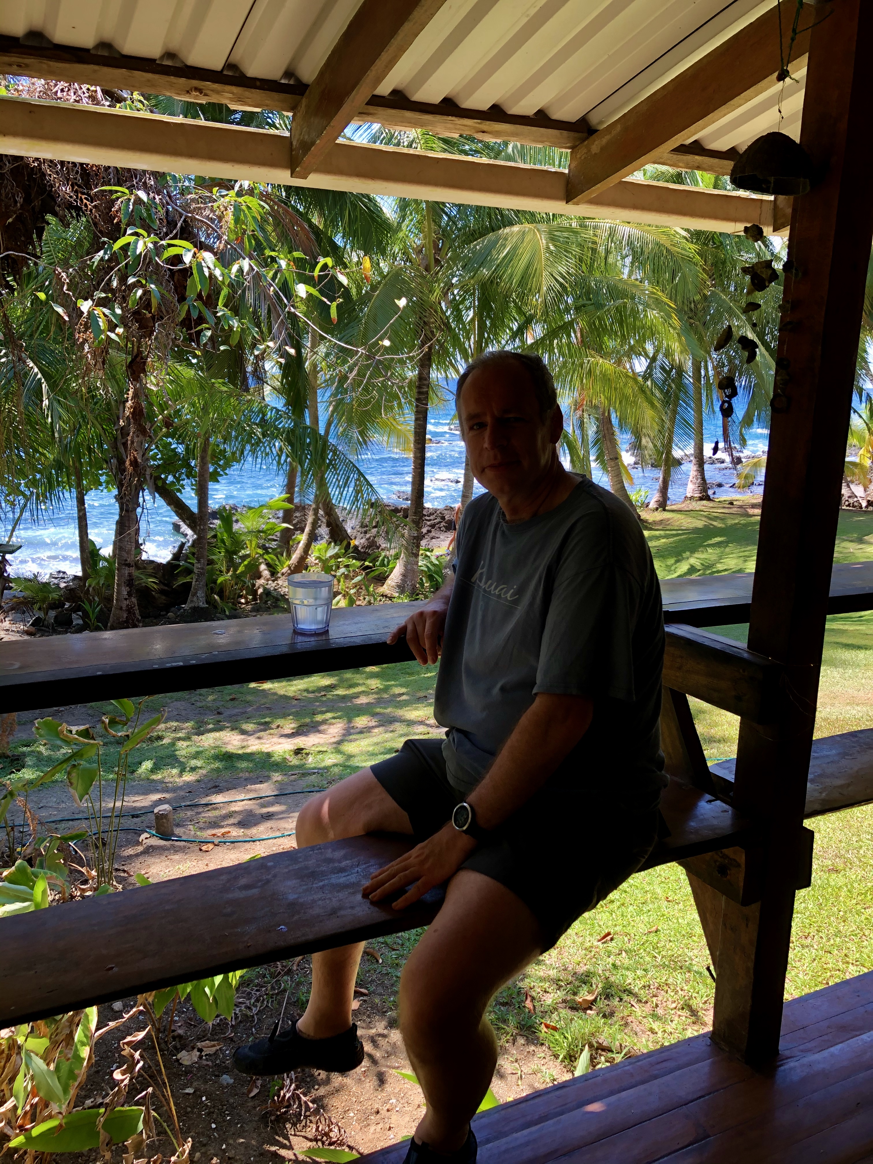 We needed to take a boat to our next destination as there are no roads. There is a trail parallel to the ocean from Drake Bay but it is a four hour hike and we had too many bags! To take the ferry someone has to merely show up and tell them which lodge they are going to. There is one stop in Drake Bay, and then stops as requested at other lodges with ours being the last stop. While we were waiting Mike found hat number two – one with flaps to cover his ears and neck. It wasn’t really his style as it was made of camo print but it was more practical than the straw hat. I also picked up a diet coke for the ride.