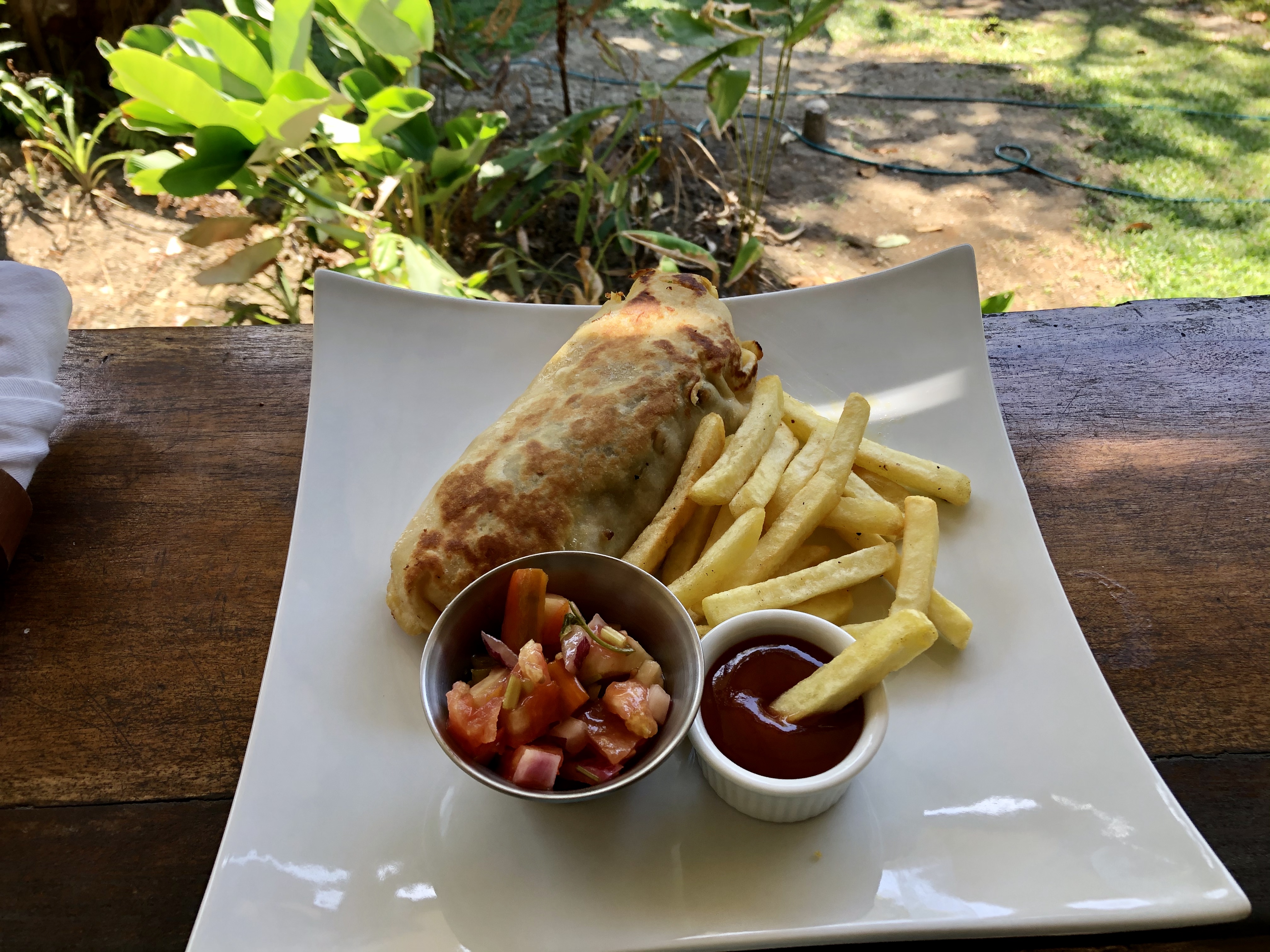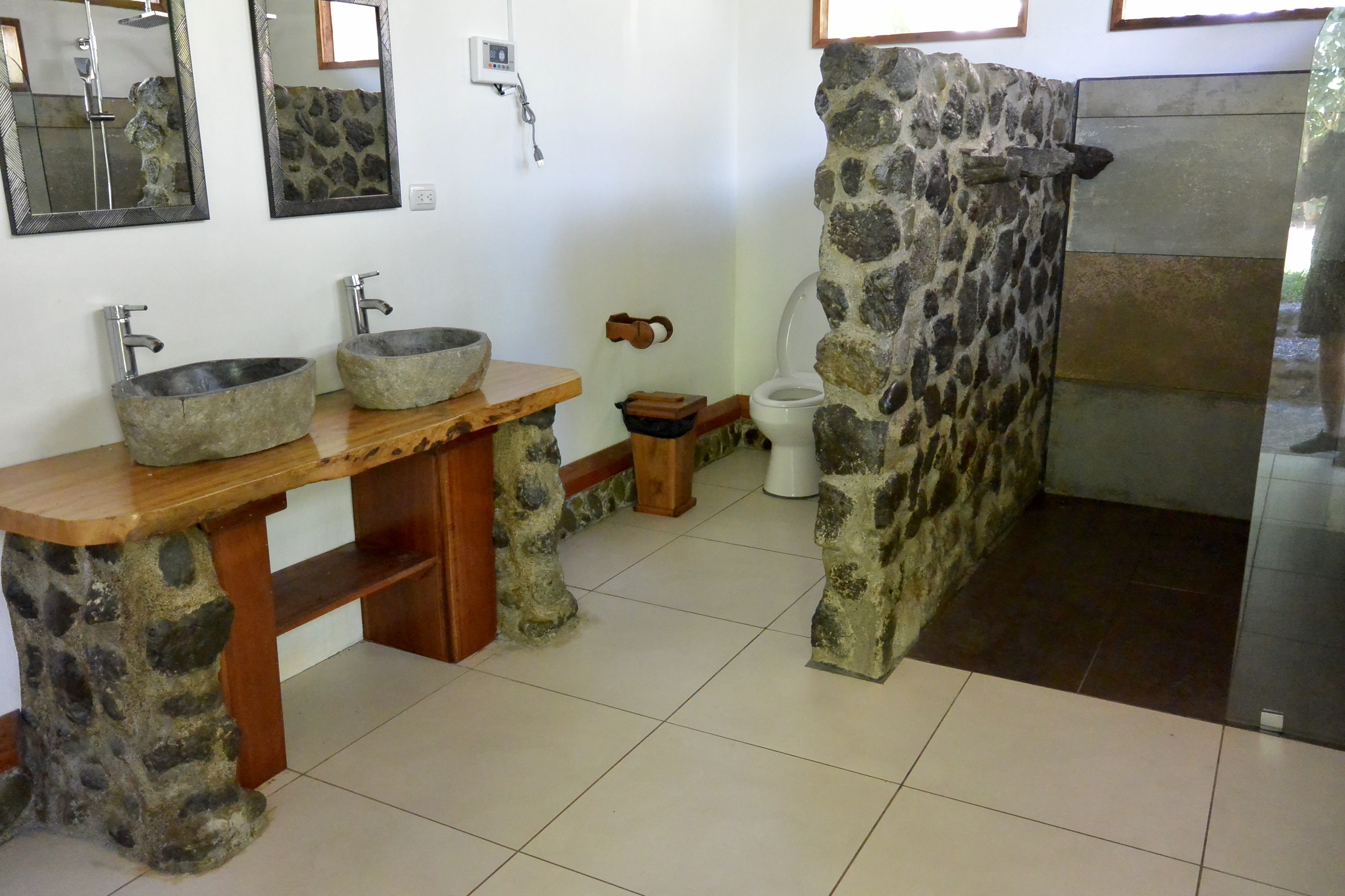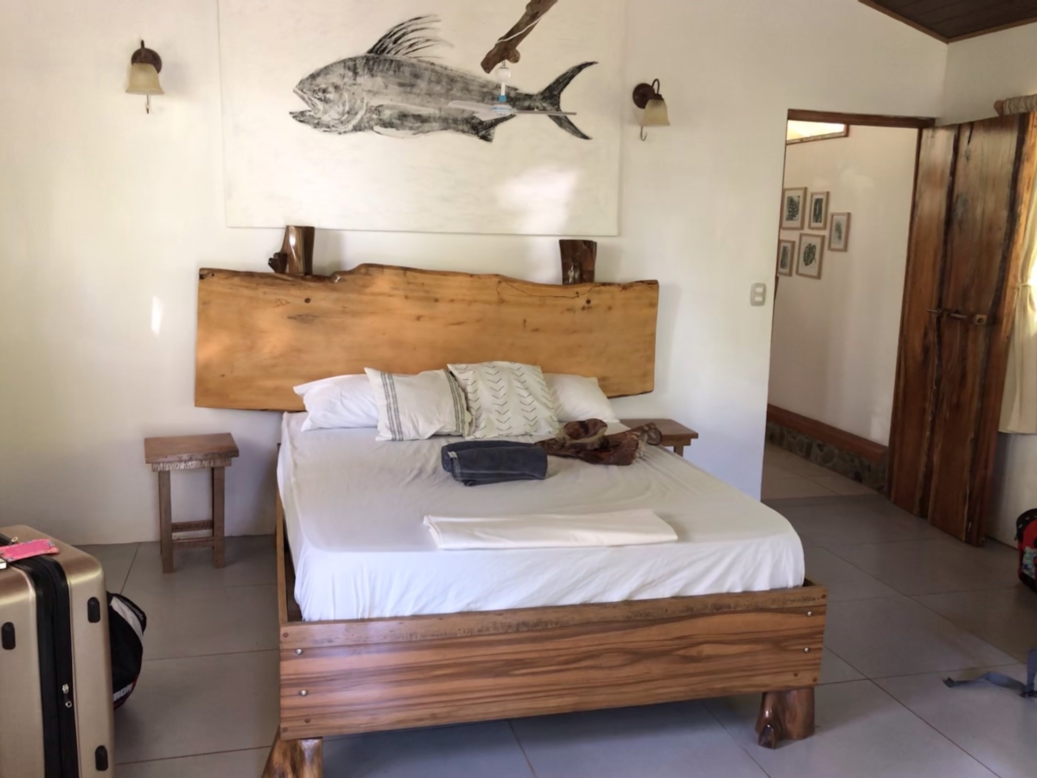 We arrived around lunch time and were greeted at the beach by the manager, Brian. He took us up to our cabin where we spent the next five nights. We had booked the most expensive one (it was only about $100 a night) and were very pleased that we did, as the one next door had a separate building for it’s bathroom. When we entered the room they were just finishing installing a ceiling fan above the bed. Great timing! We also found out just a few weeks before arriving that they now accepted credit cards so we didn’t have to bring a pile of cash with us. They had also added some more solar panels, so our power lasted all night for three of the nights that we were there. I had booked this room almost a year earlier, so these changes were a nice surprise. Our room was great – lots of room and a huge bathroom. We had a queen bed and two twin beds which we used as storage for all our gear. This property has 3 cabins as well as some hostel rooms.