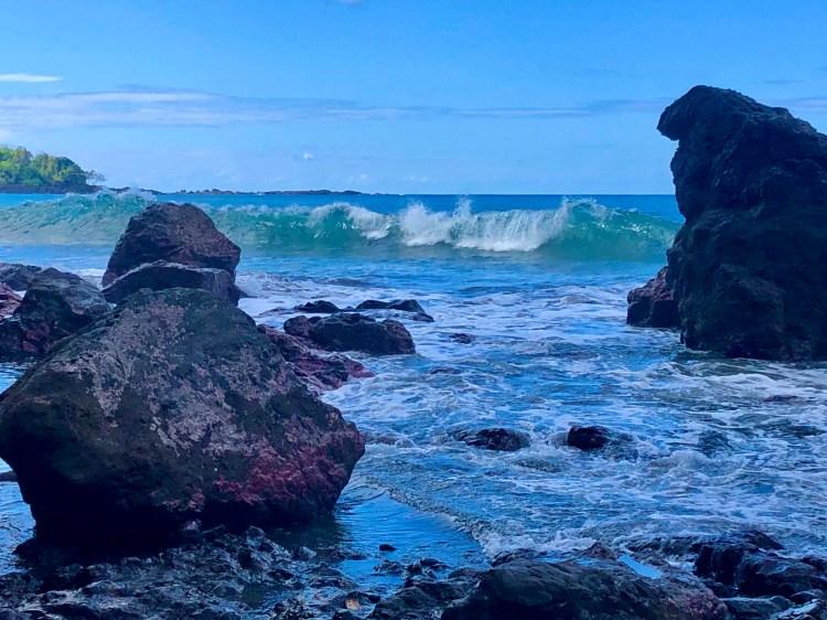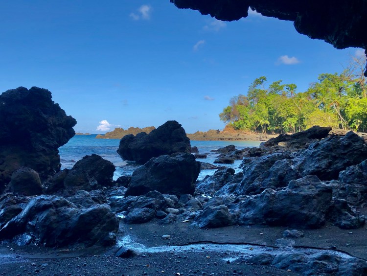 It was a bit tricky getting into one of them. When the waves came in they covered some of the rocks so knowing where to step was a bit tricky. It was a good test for our balance.