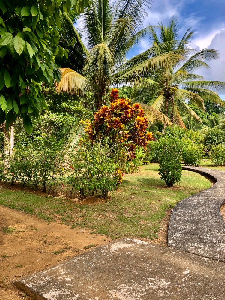 We continued on the trail until we came across another hotel: Casa Corcovado. They had many nice cabins deep in the forest. We enjoyed visiting their gardens and then headed back to the trail. We saw lots of interesting trees and plants like the twirly one below. We did not see any people!