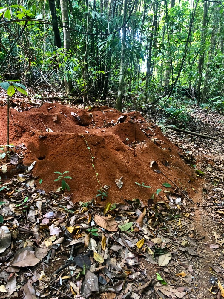 We saw a ton of leaf cutter ants and found this giant pile of sand some ants had left behind.