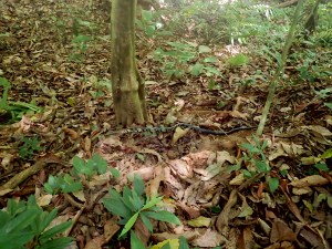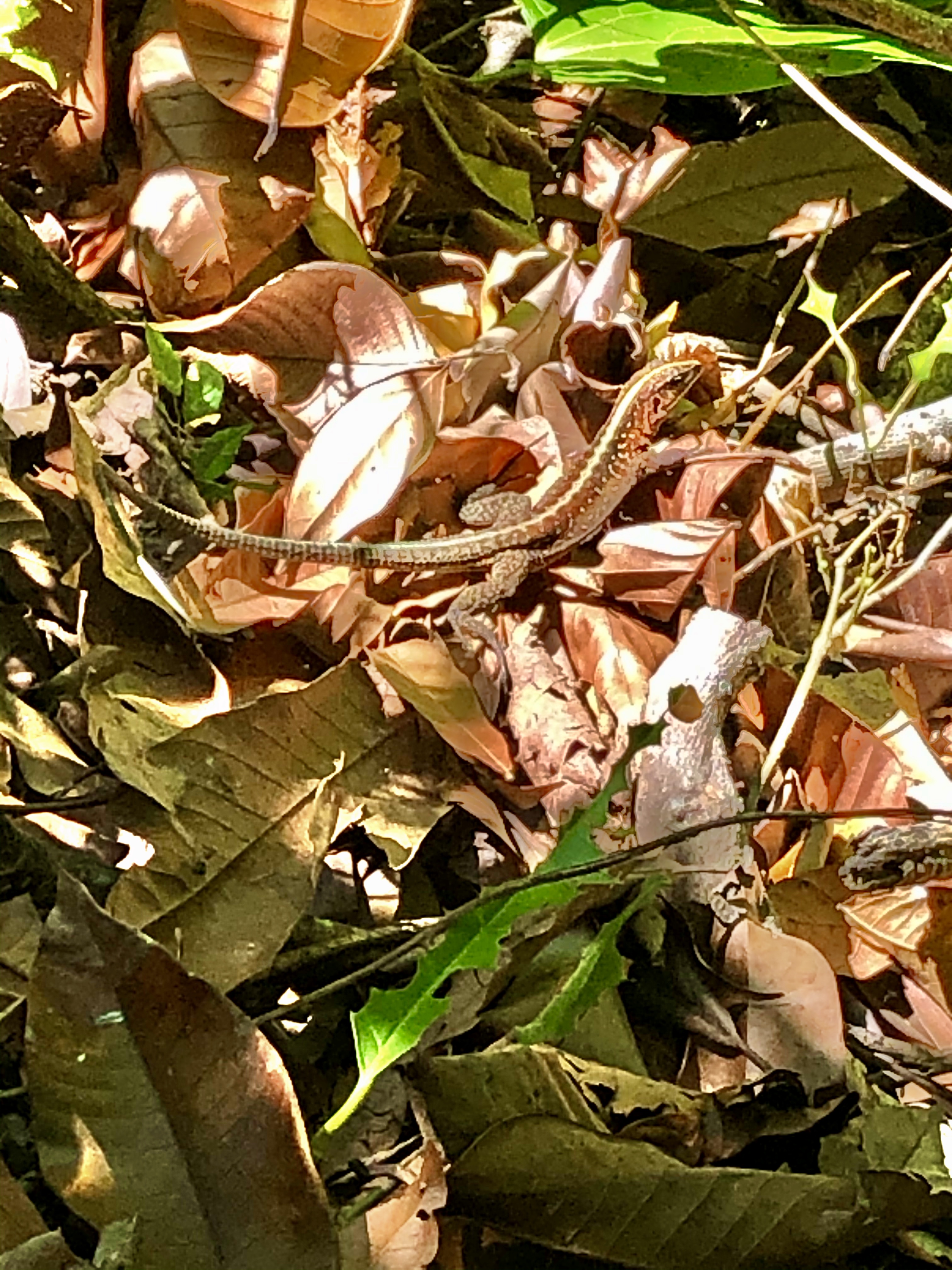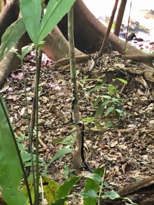 There are 69 types of lizards and 137 different kinds of snakes found in Costa Rica. Twenty are considered “dangerously venomous”. Our guide spotted this non-venomous Tiger Rat snake….it has a very long, skinny tail and can be found on the ground or in trees.