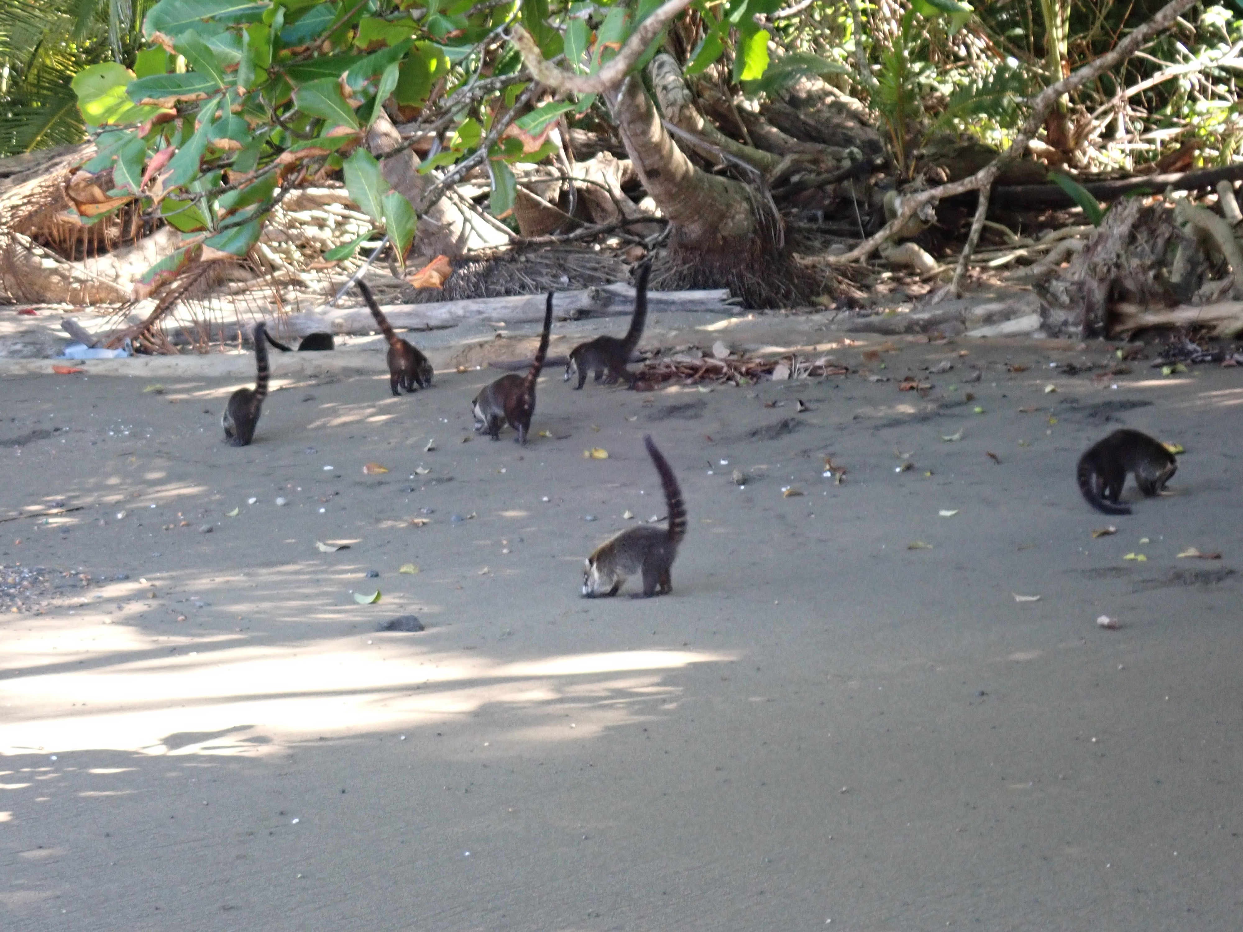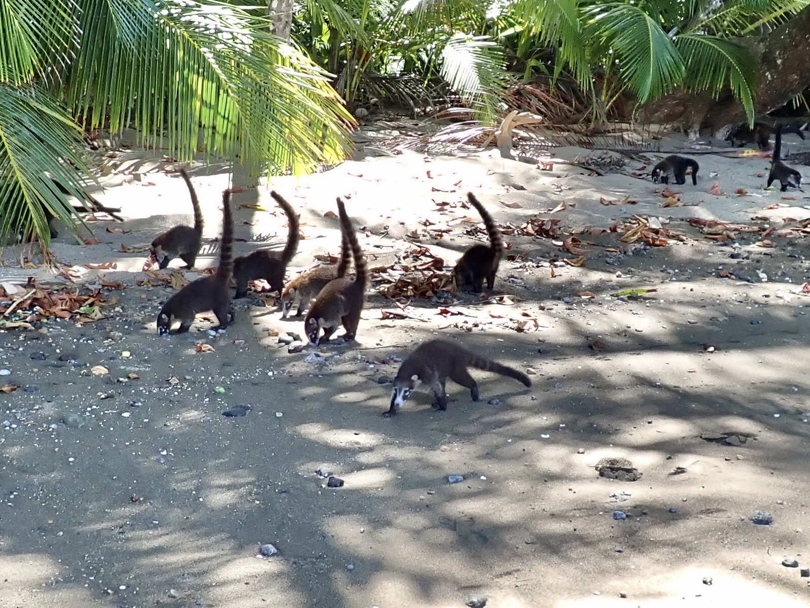On our way back towards the beach we saw a large group of Coatis. They didn’t seem to mind us walking along beside them. We enjoyed watching one of them attempt to break open a coconut.