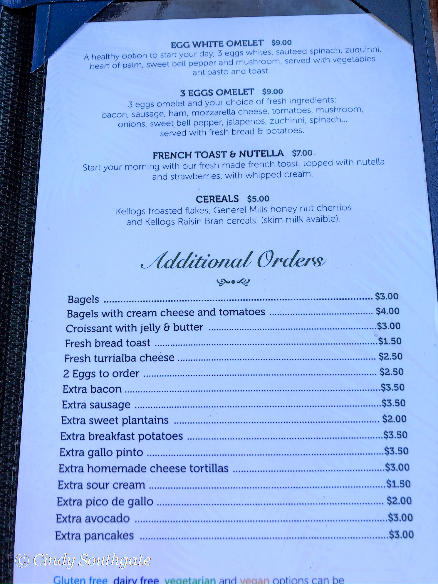 Mike was up before me as usual but I was up early too. The restaurant didn’t open until 7 a.m. so we sat on our deck and read. As soon as it was 7 we headed to the restaurant.