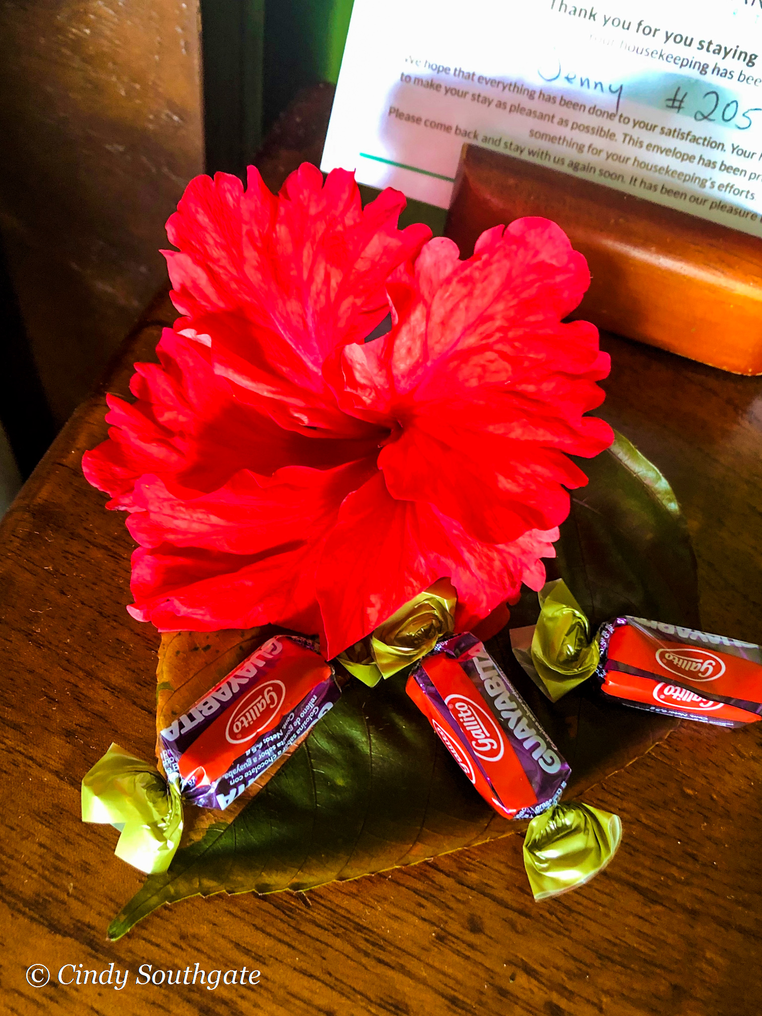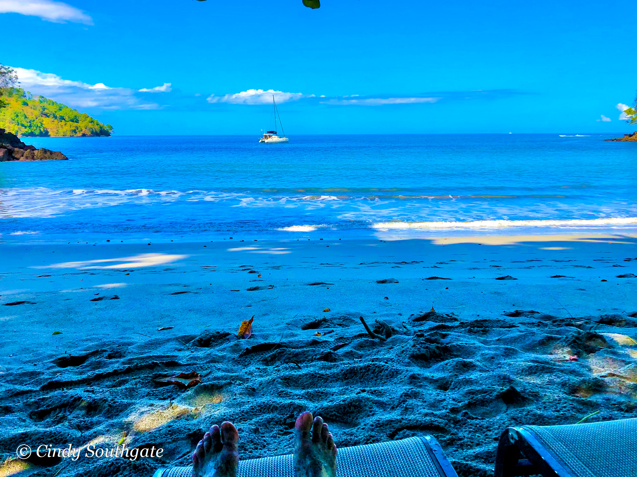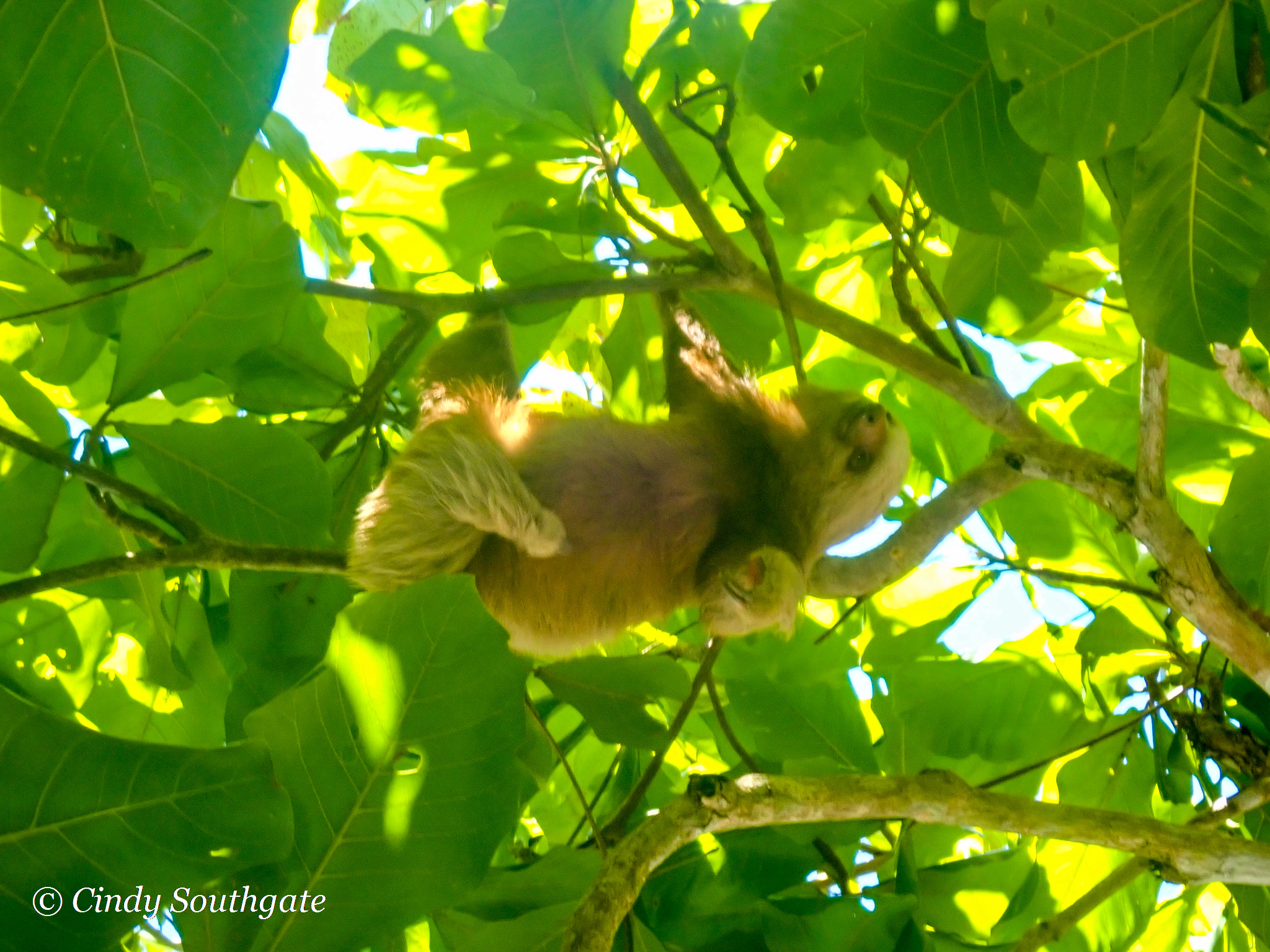 We headed back to our room to prepare for our beach day. I wanted to get down there early to hopefully snag the chairs under the tree that the sloth was hanging out in.