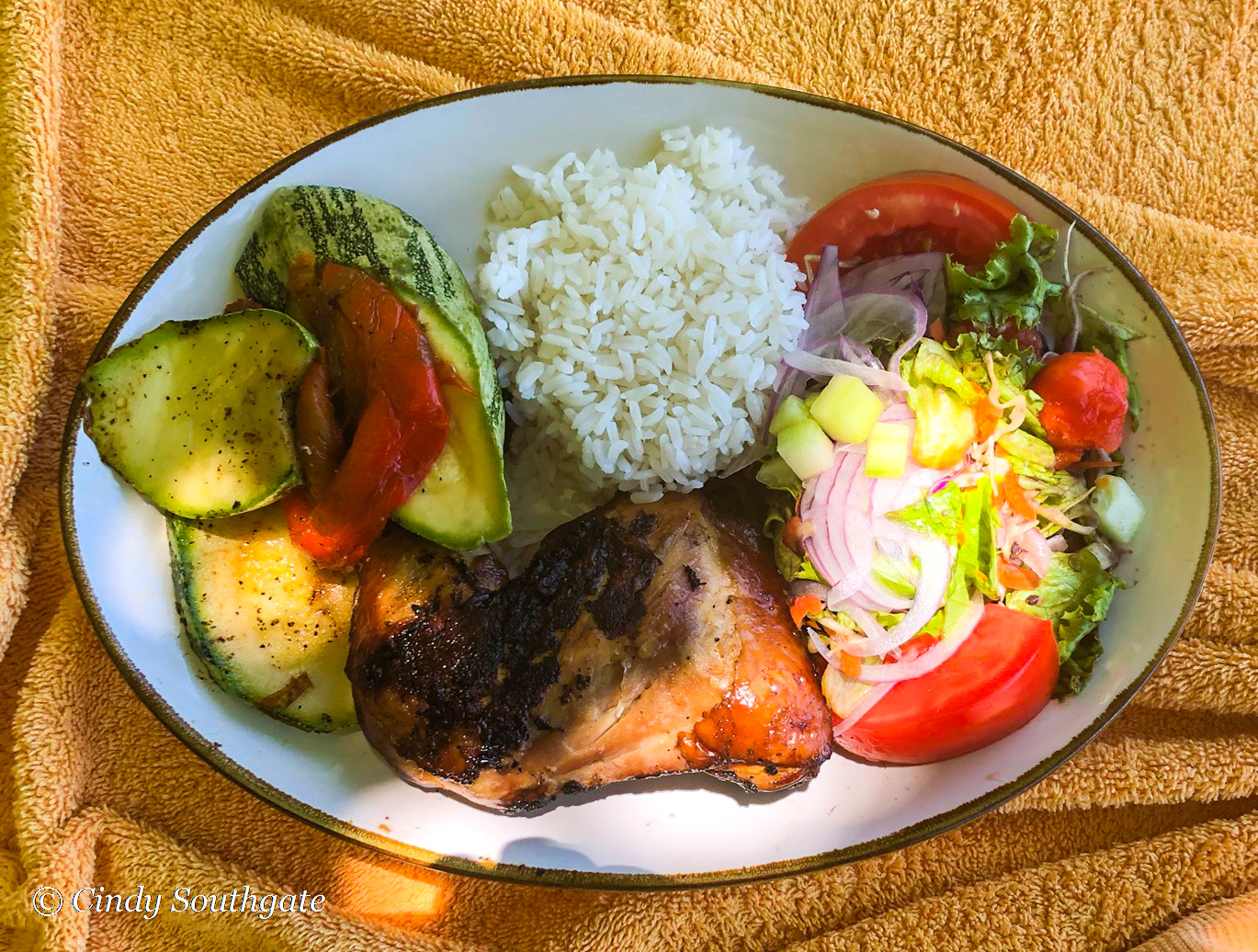When the beach waiter started his rounds we ordered our lunch. They brought the food down from the restaurant. I also ordered a cocktail. Those were made at the beach bar and I was disappointed because they couldn’t make me a Pina Colada without electricity. They have strict rules about how close plumbing and electricity can be to the beach.