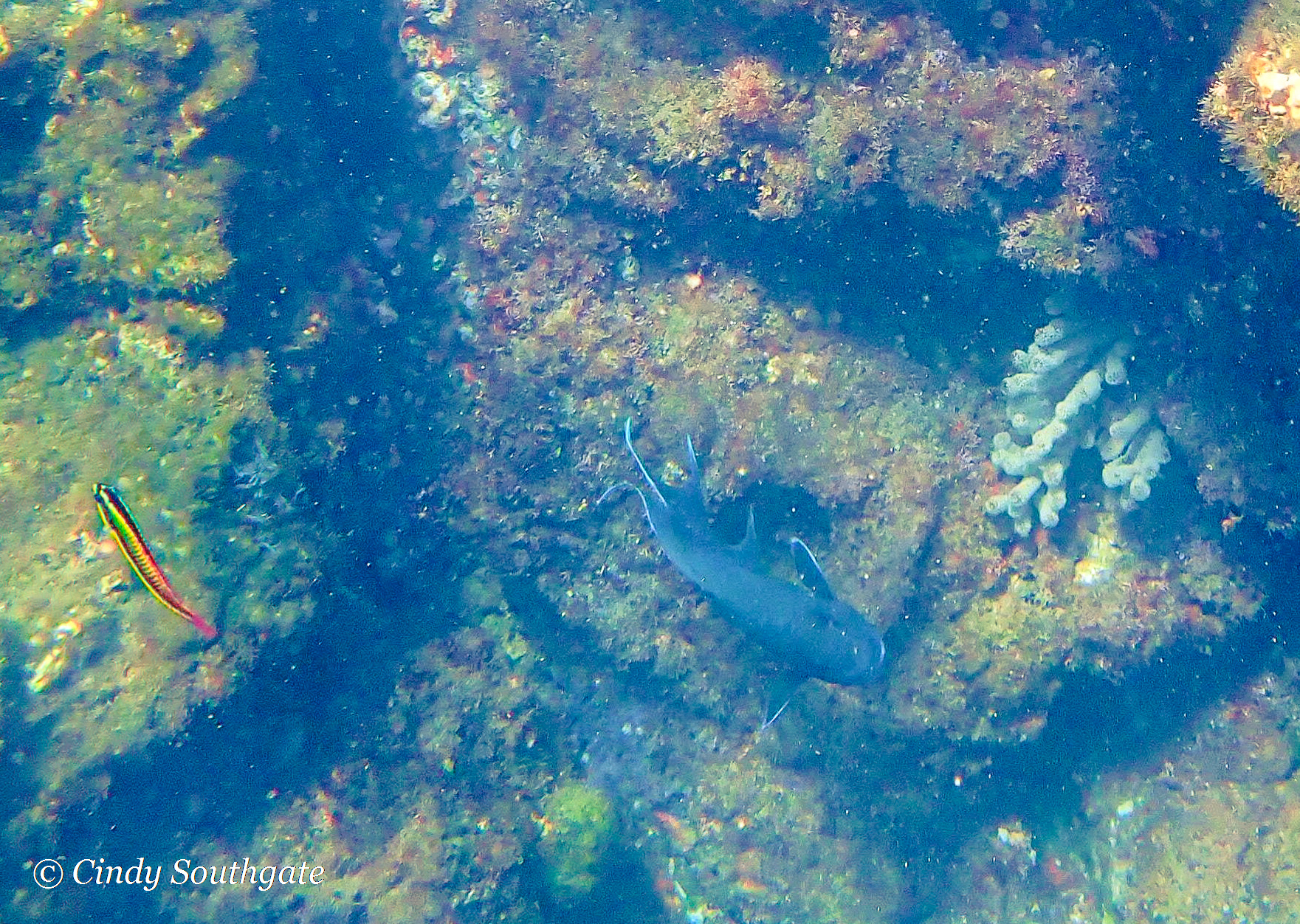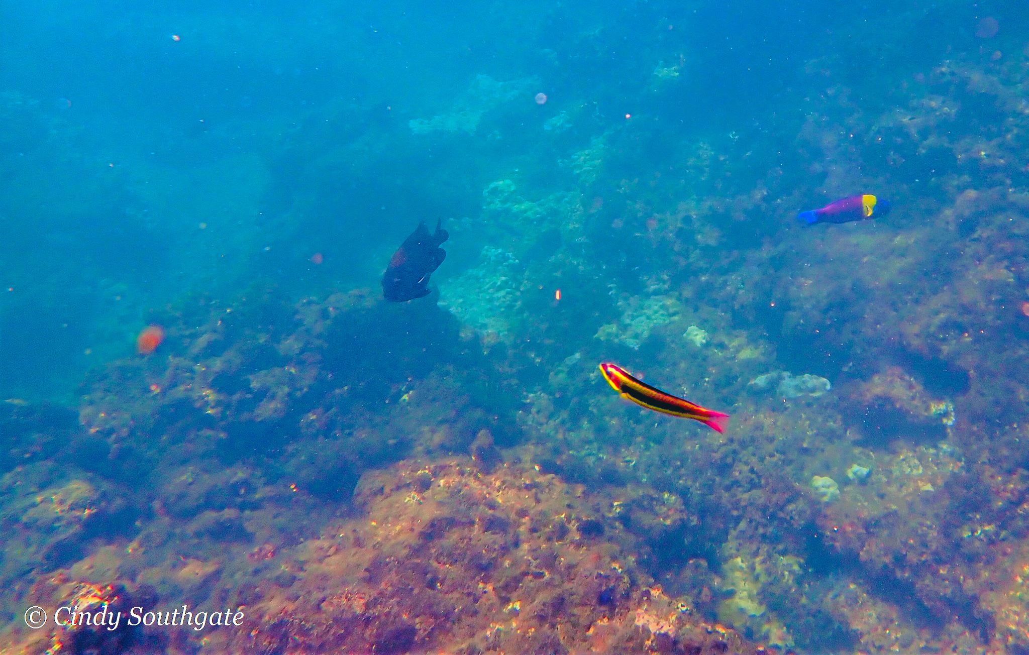 After reading and relaxing we took some kayaks out along with our snorkel gear. I have very small feet and I have a hard time finding masks that don’t leak so it’s easier to bring my own gear. The beach concierge told us that there was a spot to tie our kayaks on the other side of the bay.