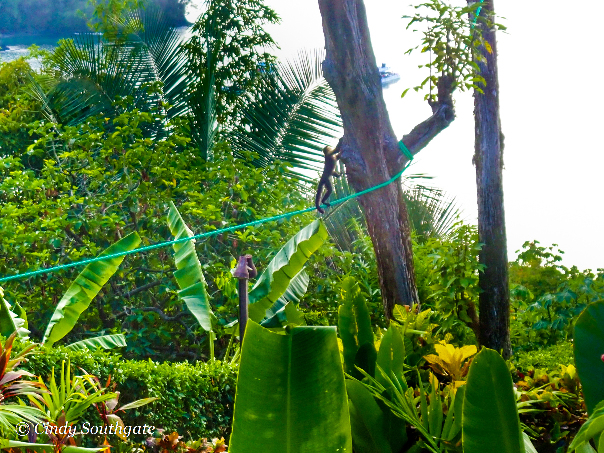 We headed back to our room to change for dinner. While we were at our room we saw some monkeys using the rope bridge.