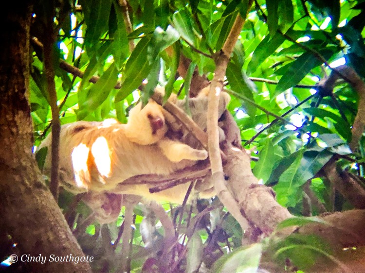 Shortly after breakfast we walked up to the main office for our first tour of the day – The Sloth Walk. We met our guide upstairs at the Sloth Institute and she led us through the property pointing out the sloths and other wildlife as she spotted them. The first sloth she found was a mother and baby.