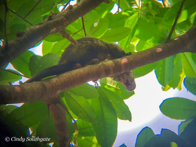 The Mexican Hairy Porcupine is nocturnal and arboreal but he was awake and yawning when we took his picture. They have prehensile tails unlike the porcupines here in Canada, which makes it easier for them to move around in the trees.