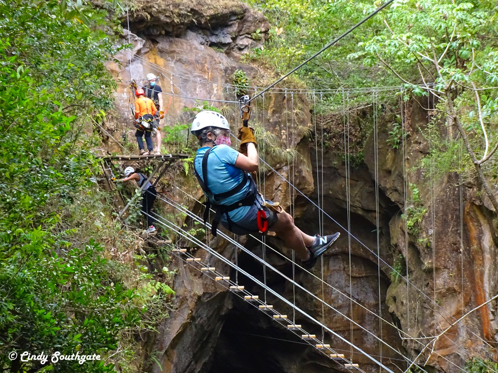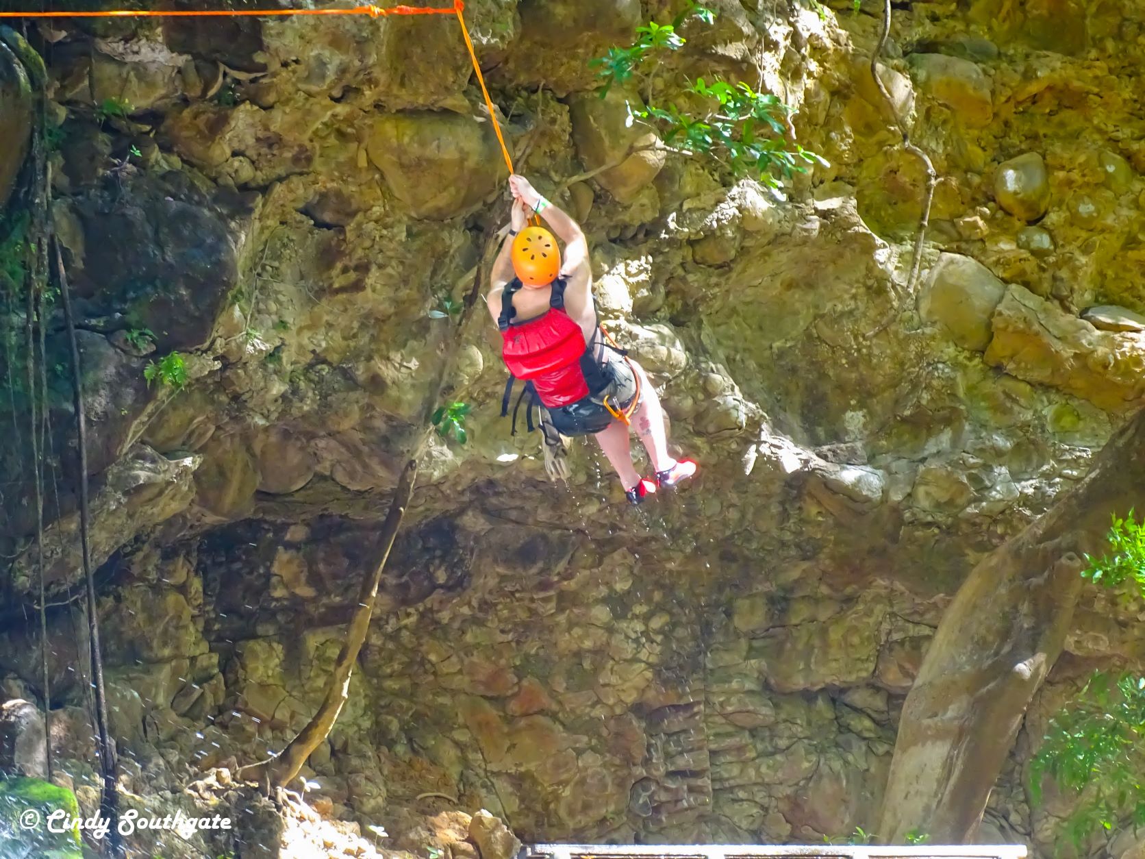 Toward the end of the tour we had to get across the canyon from one platform to the next by swinging on a rope. The young woman going ahead of me was very scared and I wasn’t far behind! Once you passed the first platform of the day you had no other option than to continue. They kept us moving through the lines pretty quickly so we had less time to be afraid.