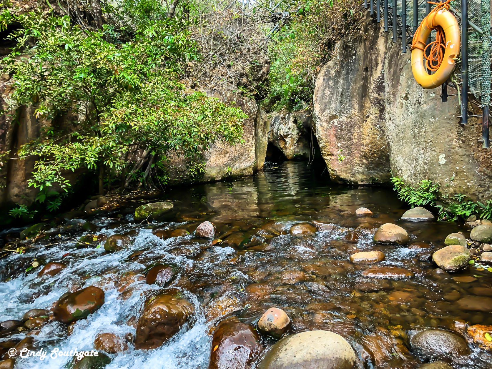 When they were showing us what to do they failed to mention what would happen when we reached the water. I assumed we would lower ourselves into the water and then unclip ourselves. They didn’t tell us that the rope would run out several feet above the water. I was quite surprised to find myself falling into the river.
