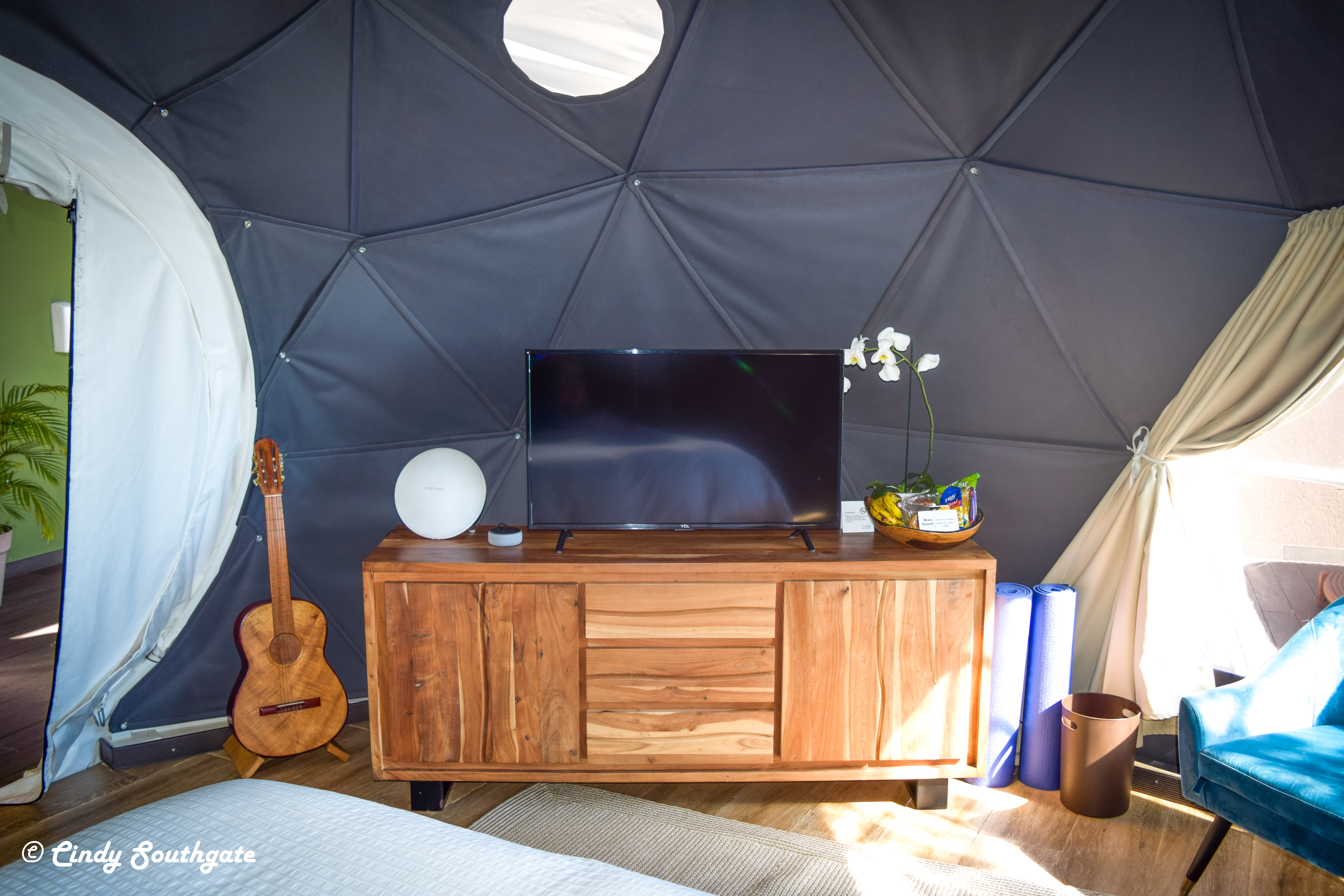 After lunch and a bit of wandering in some small shops we headed back up the big hill. I was excited to see our “room” as I had booked us the honeymoon tent at Chira Glamping. https://chiraglamping.com/.