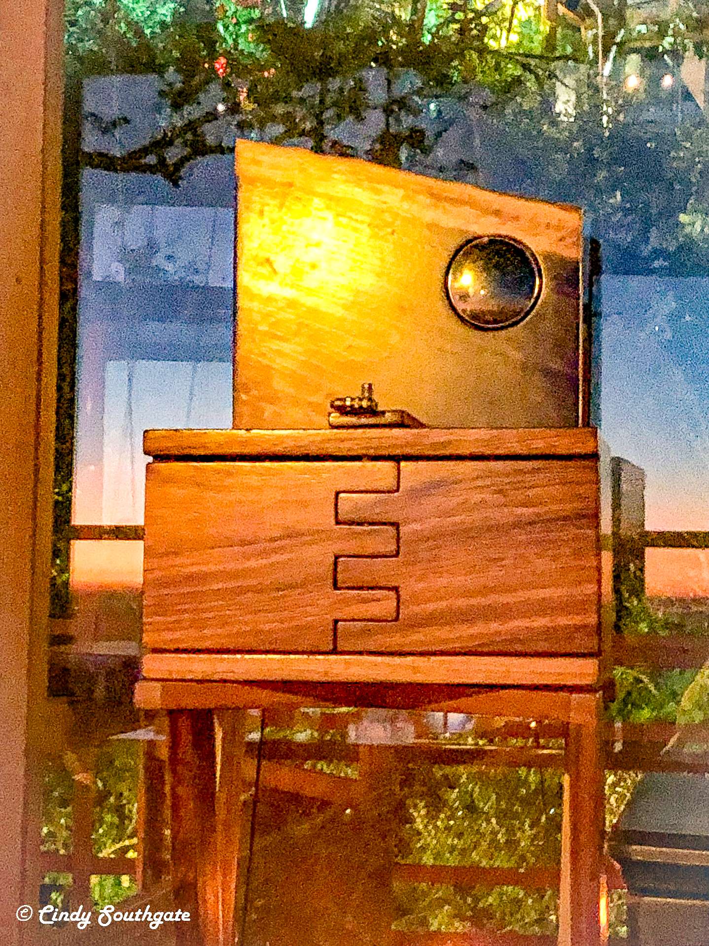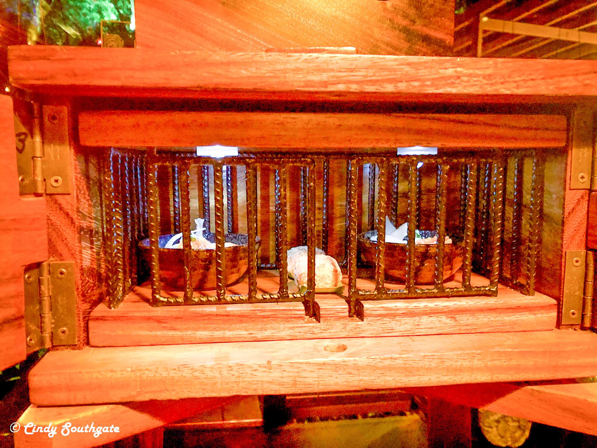 We solved the problems and enjoyed our dessert which also included some frozen treats inside a large plastic ball. We forgot about the jail part of the test, so the waiter opened up the top of the box to reveal a picture they had taken of us when we arrived for dinner.