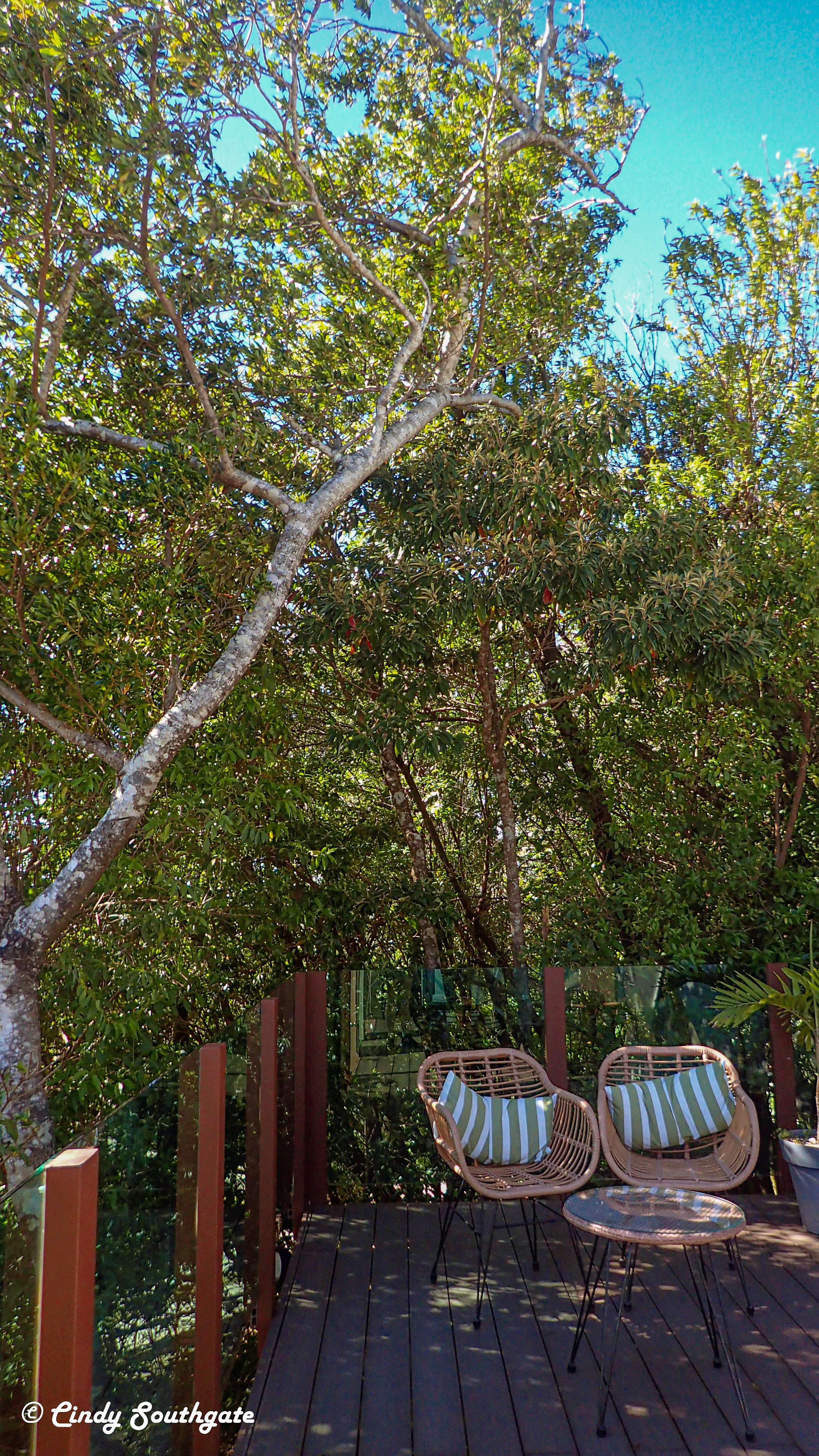 We enjoyed the view, and after eating way too much food, we headed back to our tree top tent. We had a little surprise of some coffee and treats that were left on our bed. There was romantic music playing and some nice scents.