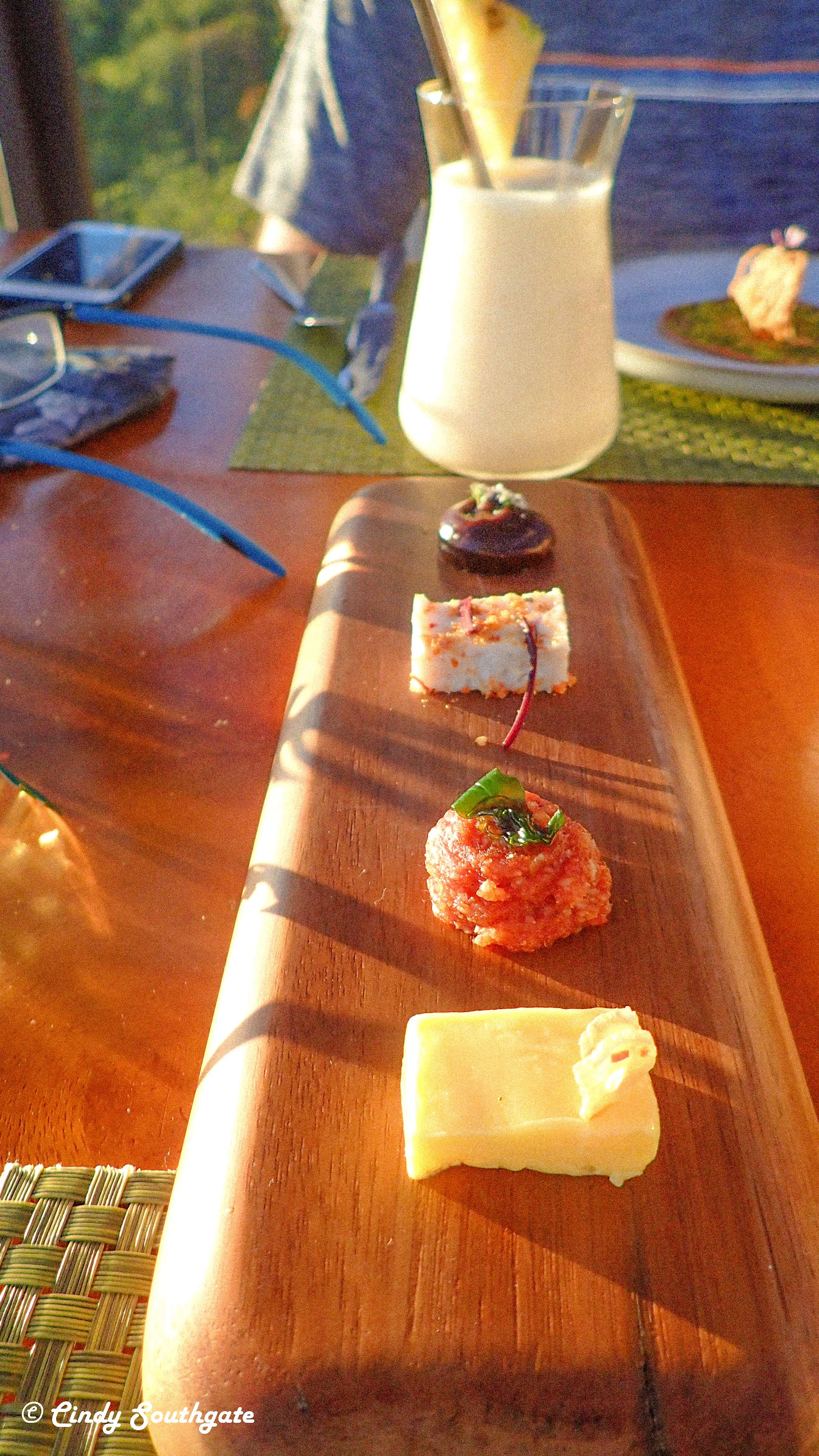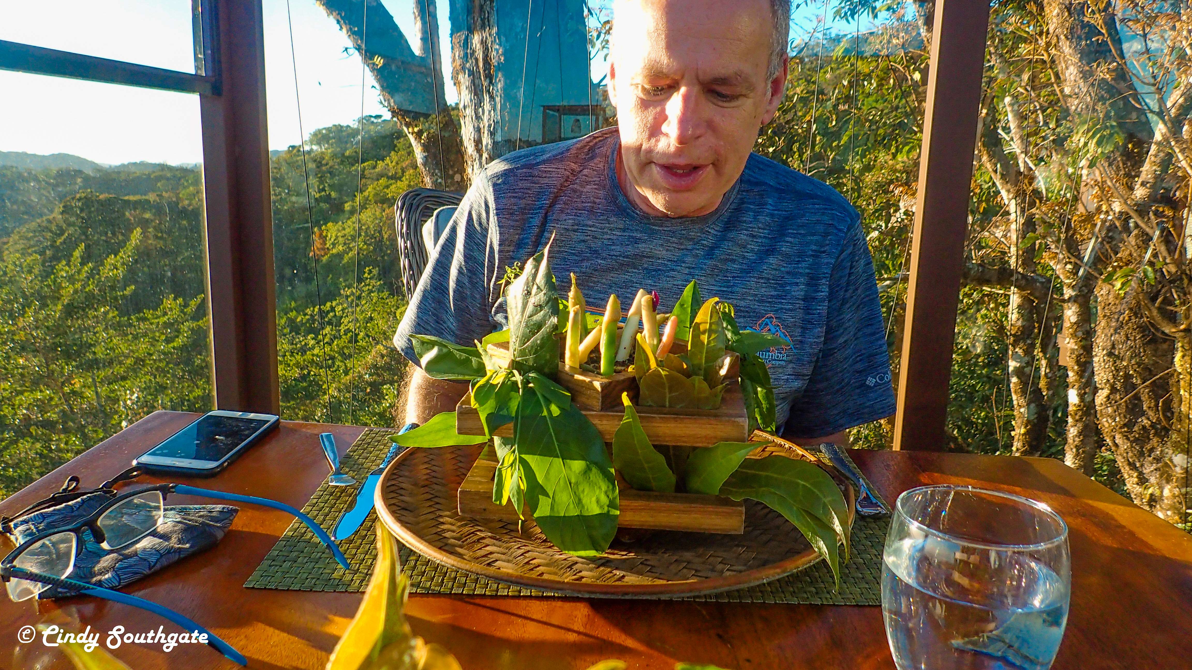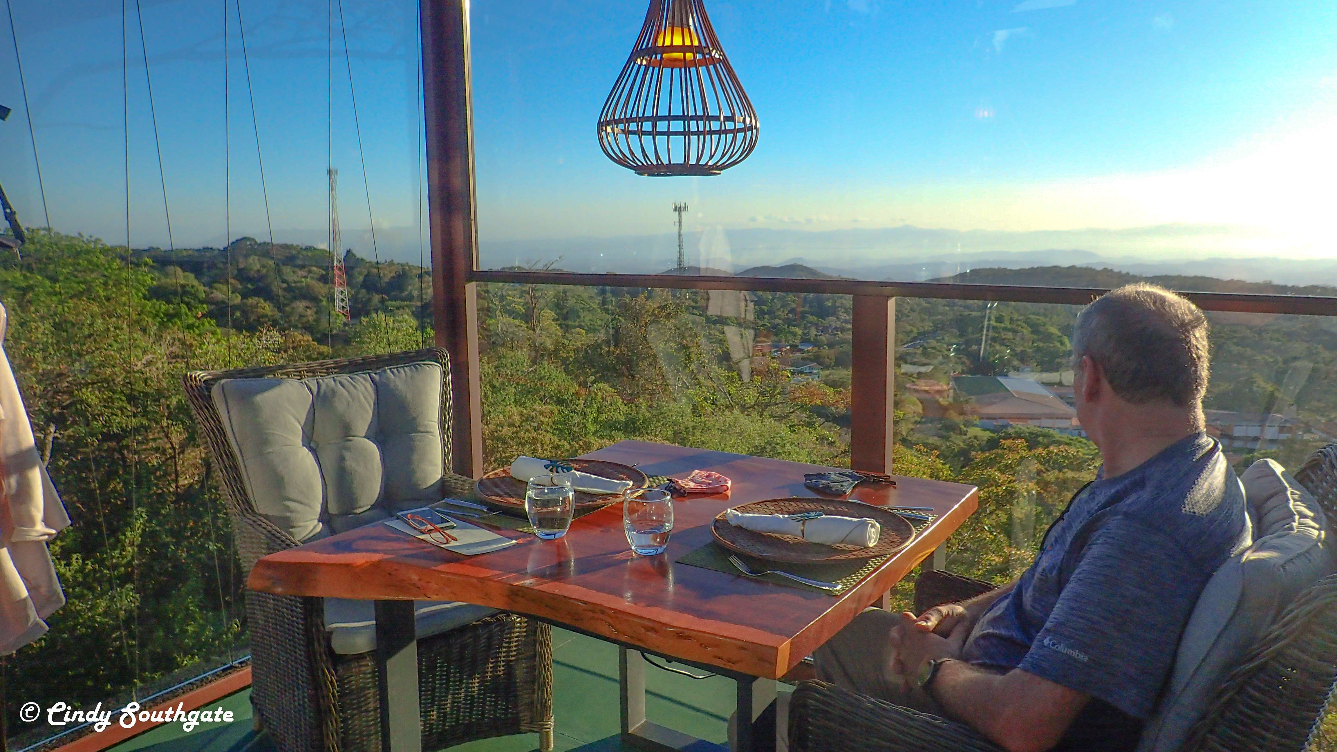 After relaxing a bit and settling in, we got ready for dinner. We had reservations for a dining experience set in the tree tops. San Lucas serves a 9 course meal in private glass rooms. There are only 8 rooms and the experience lasts for two and a half hours. We chose the 5 pm seating so we could enjoy the sunset while dining. This was our most expensive dinner ever at $170 a person not including drinks. https://sanlucas.cr/