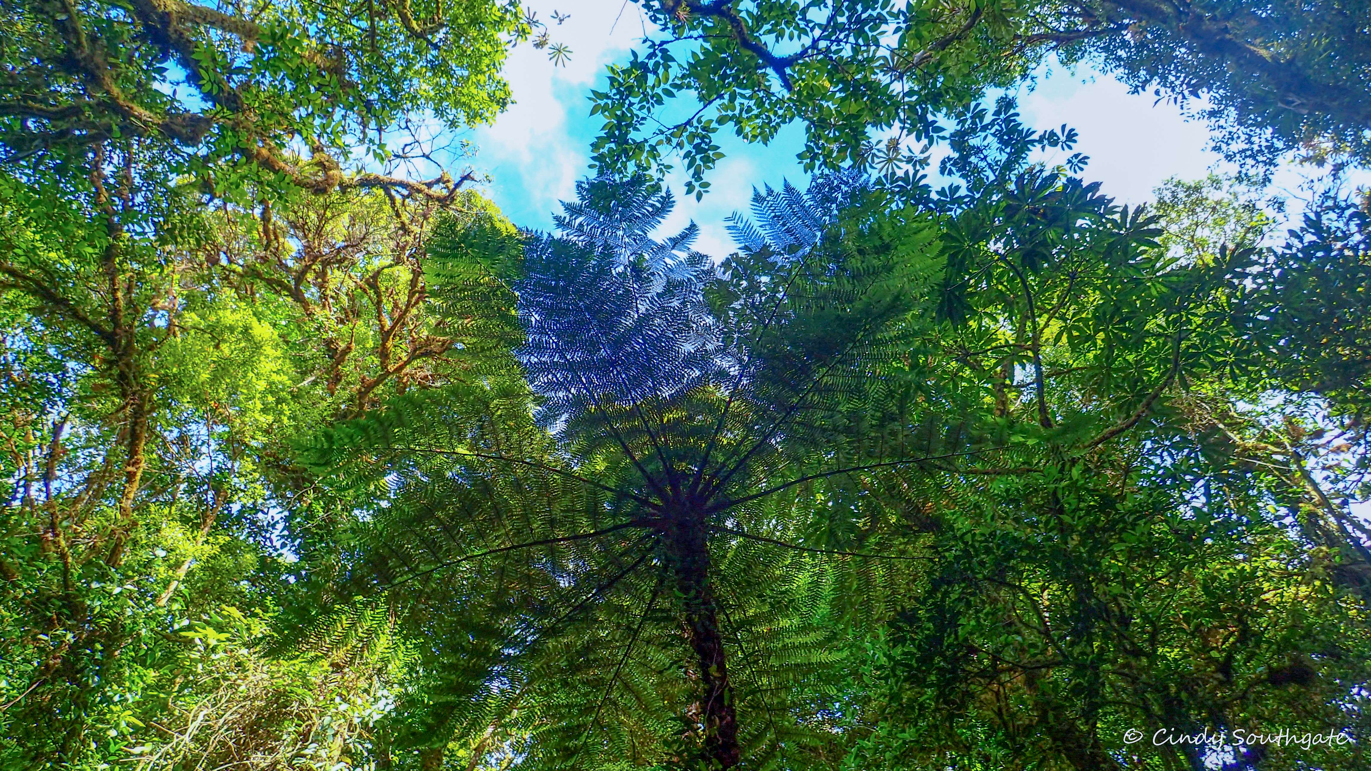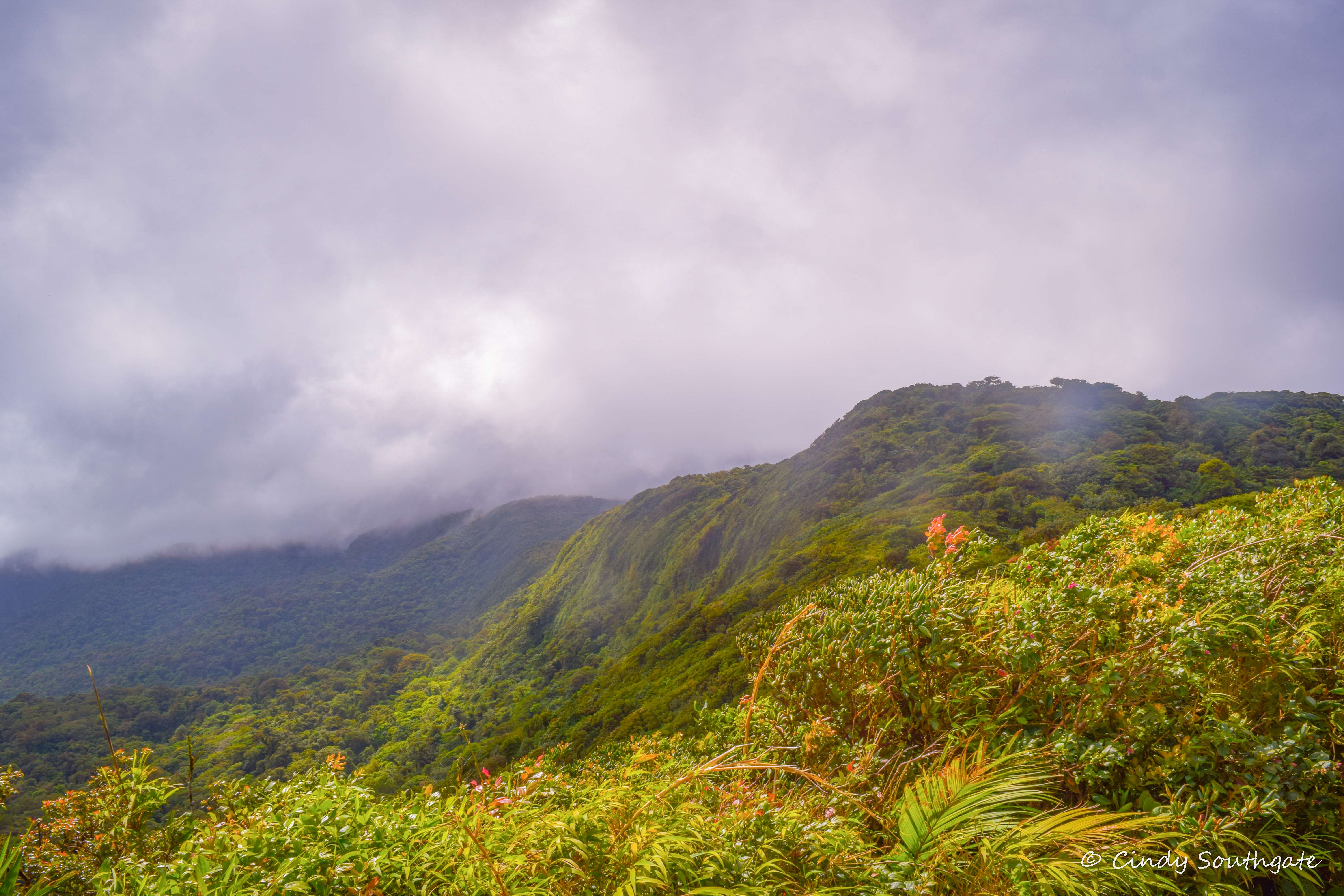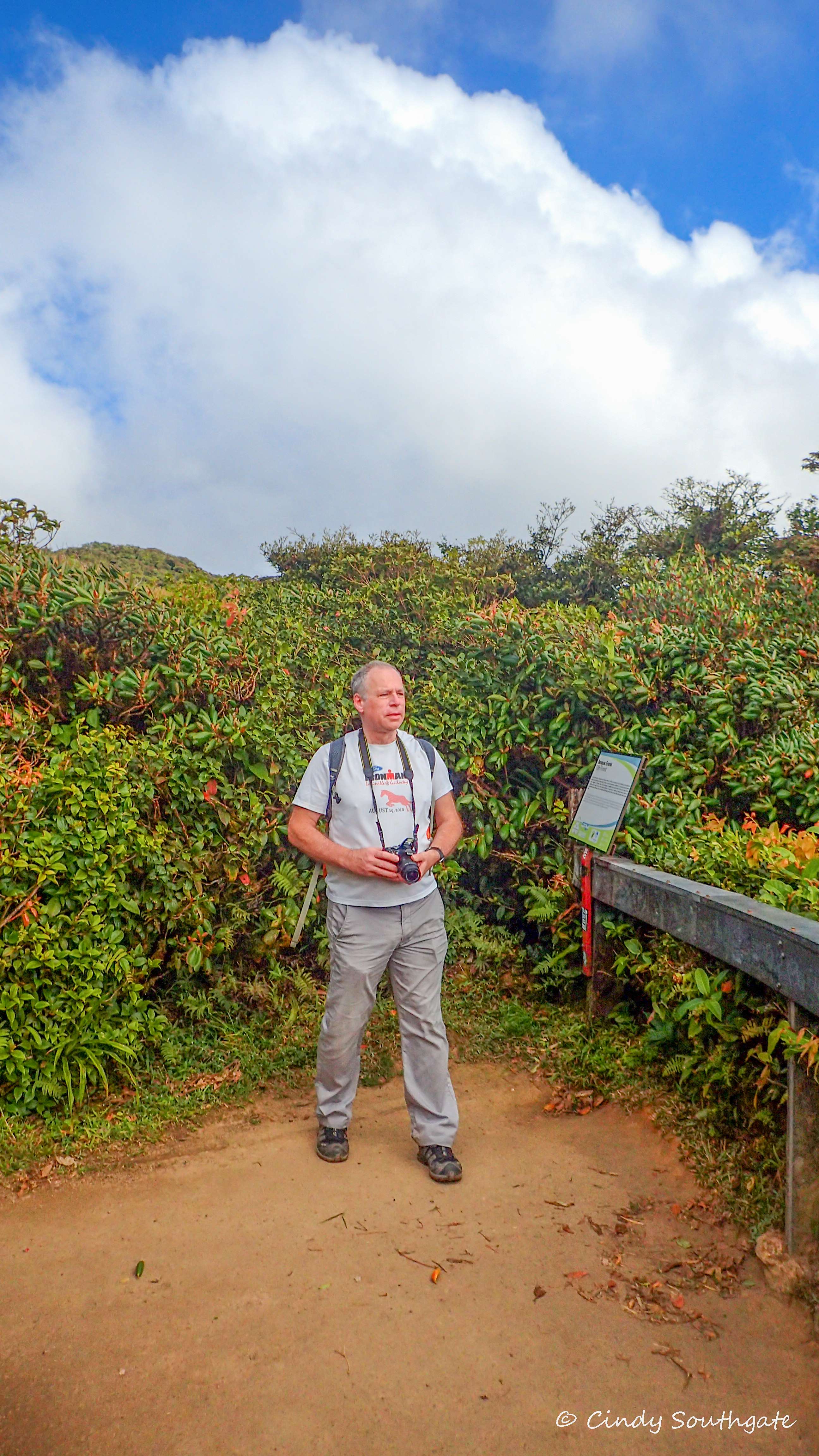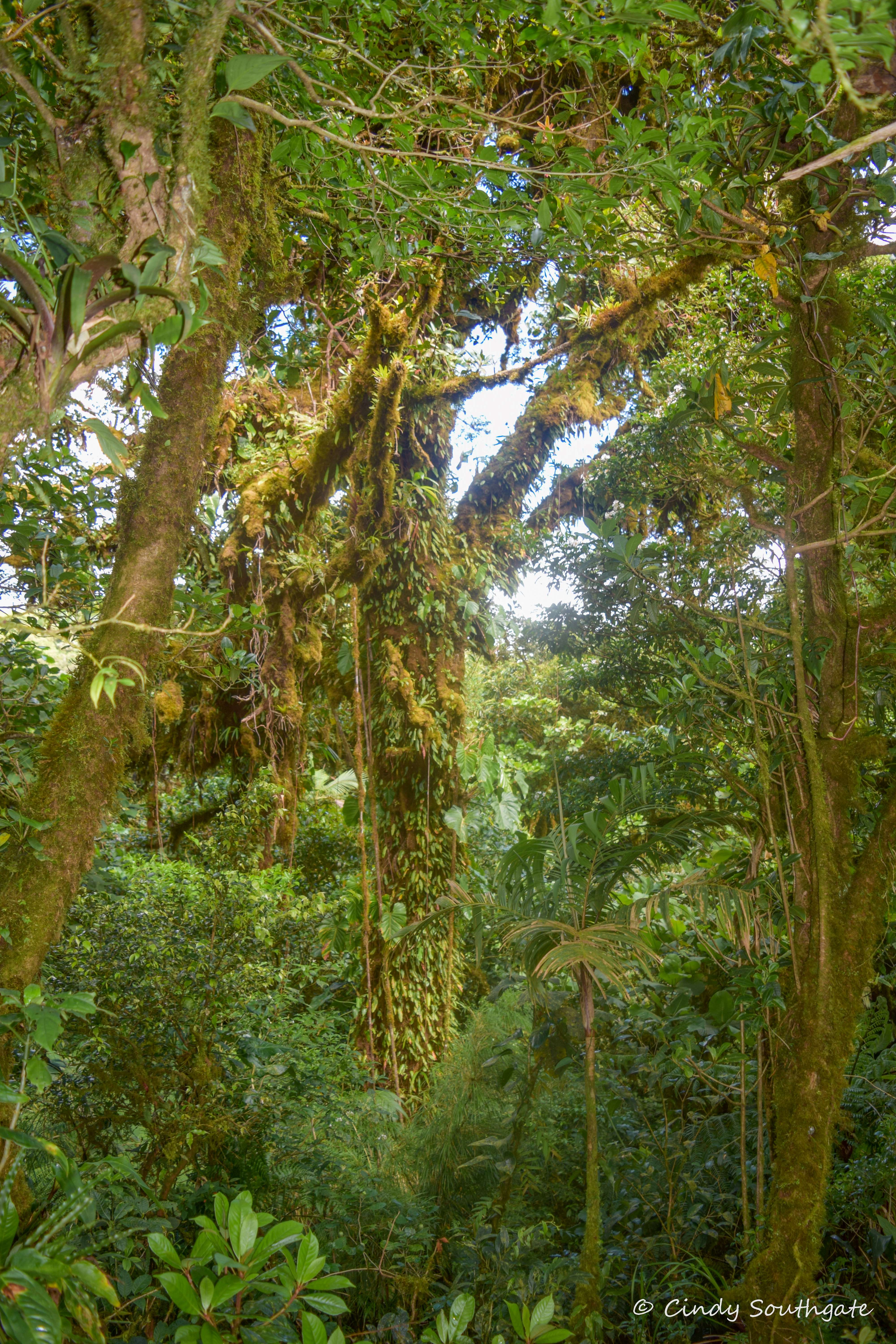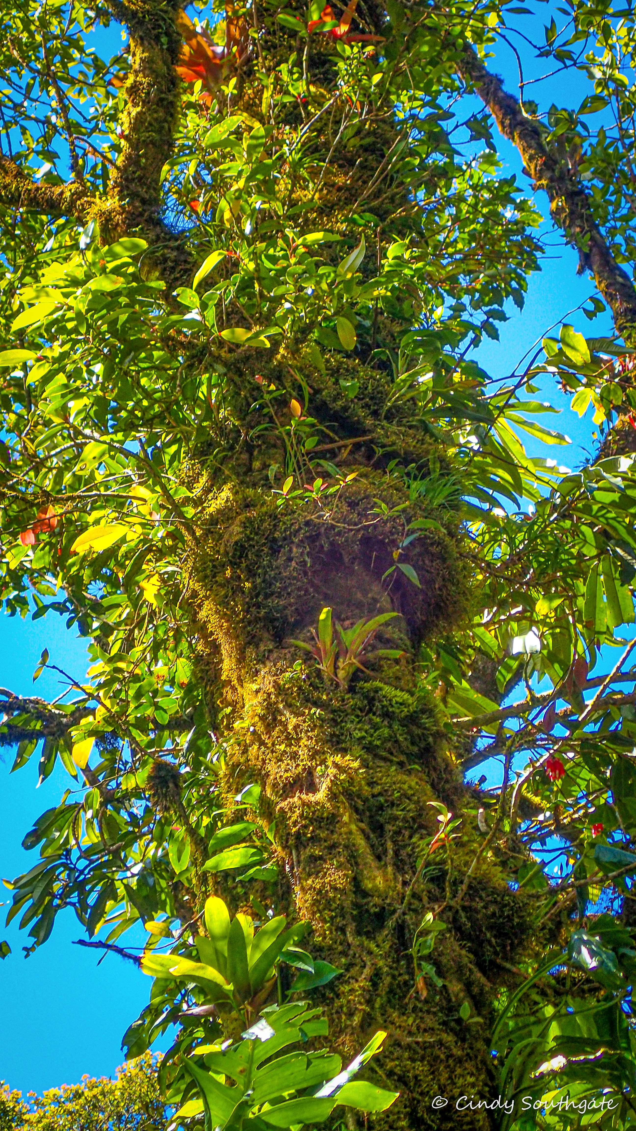 As we gradually climbed higher, we reached an area called the Elfin Forest. Here the trees and bushes are much smaller as they are subjected to strong winds and fog. Many trees appear twisted and are partially covered with epiphytic bushes or vines. These types of vines actually grow from the tree that they are attached to.