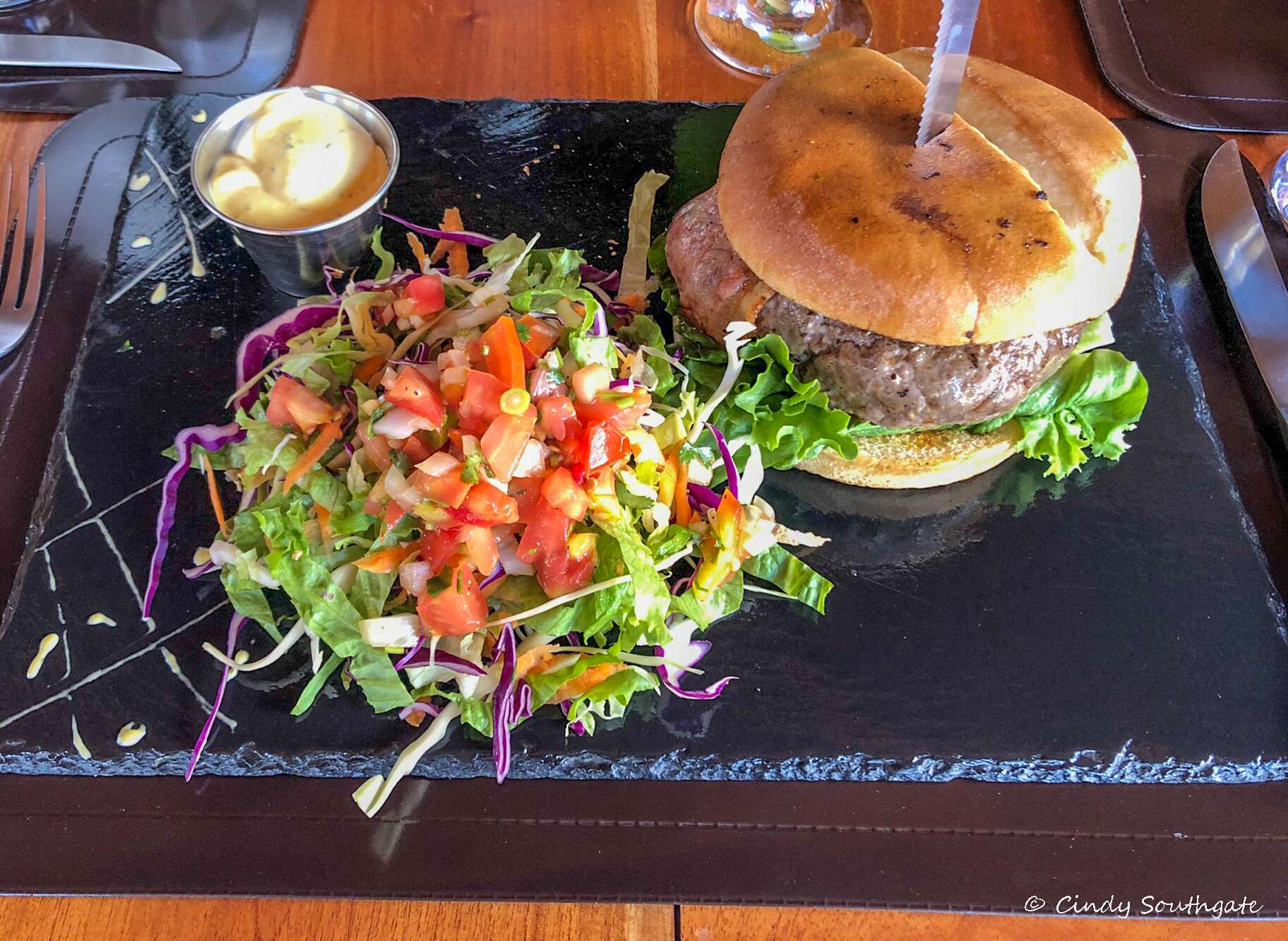 Based on a recommendation from our hotel, we chose to have dinner at Tremonti. It was a short drive away and was on a hill with a lovely view towards the ocean. We decided to sit outside on the small balcony. Both the service and food were very good.