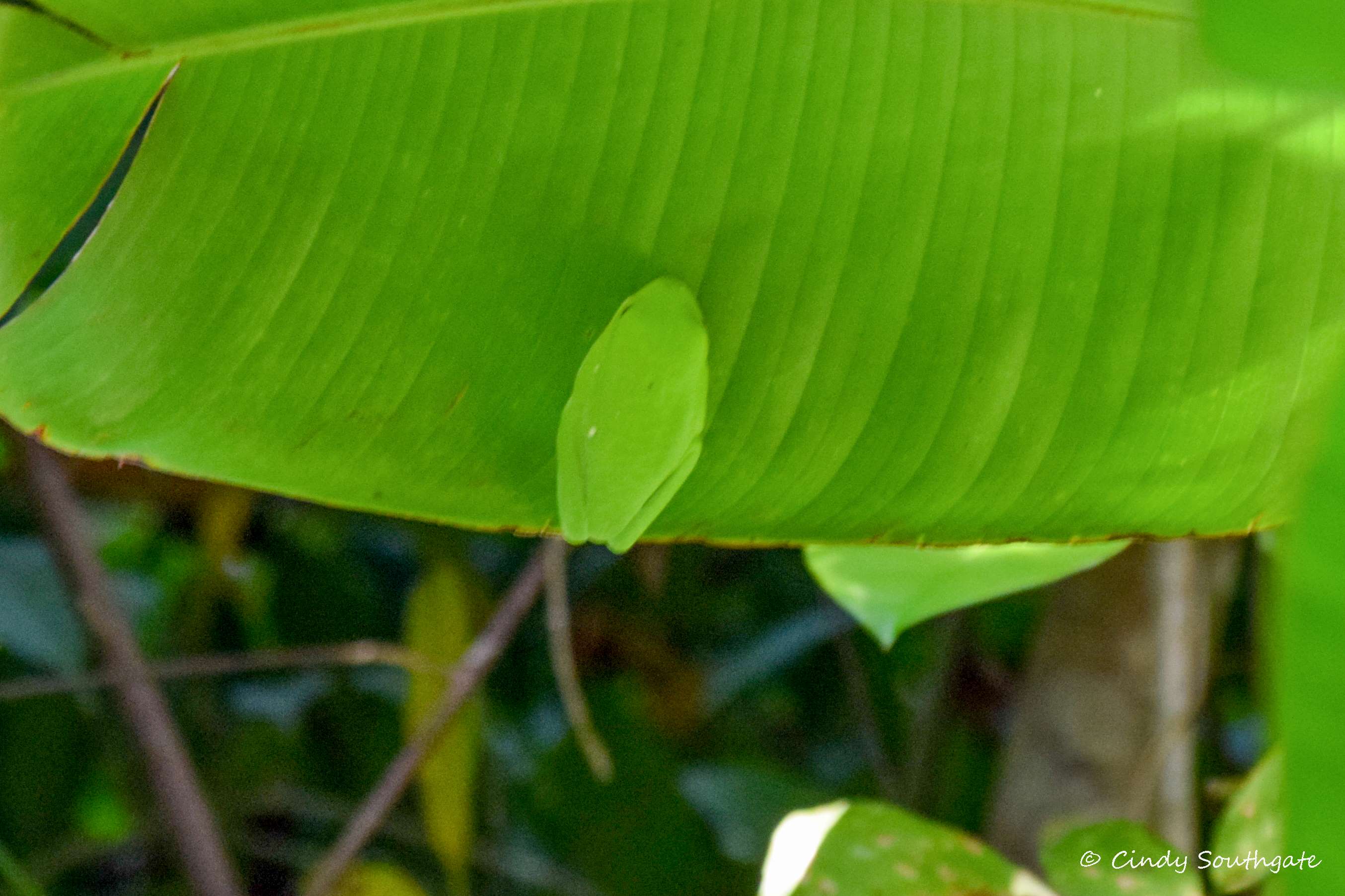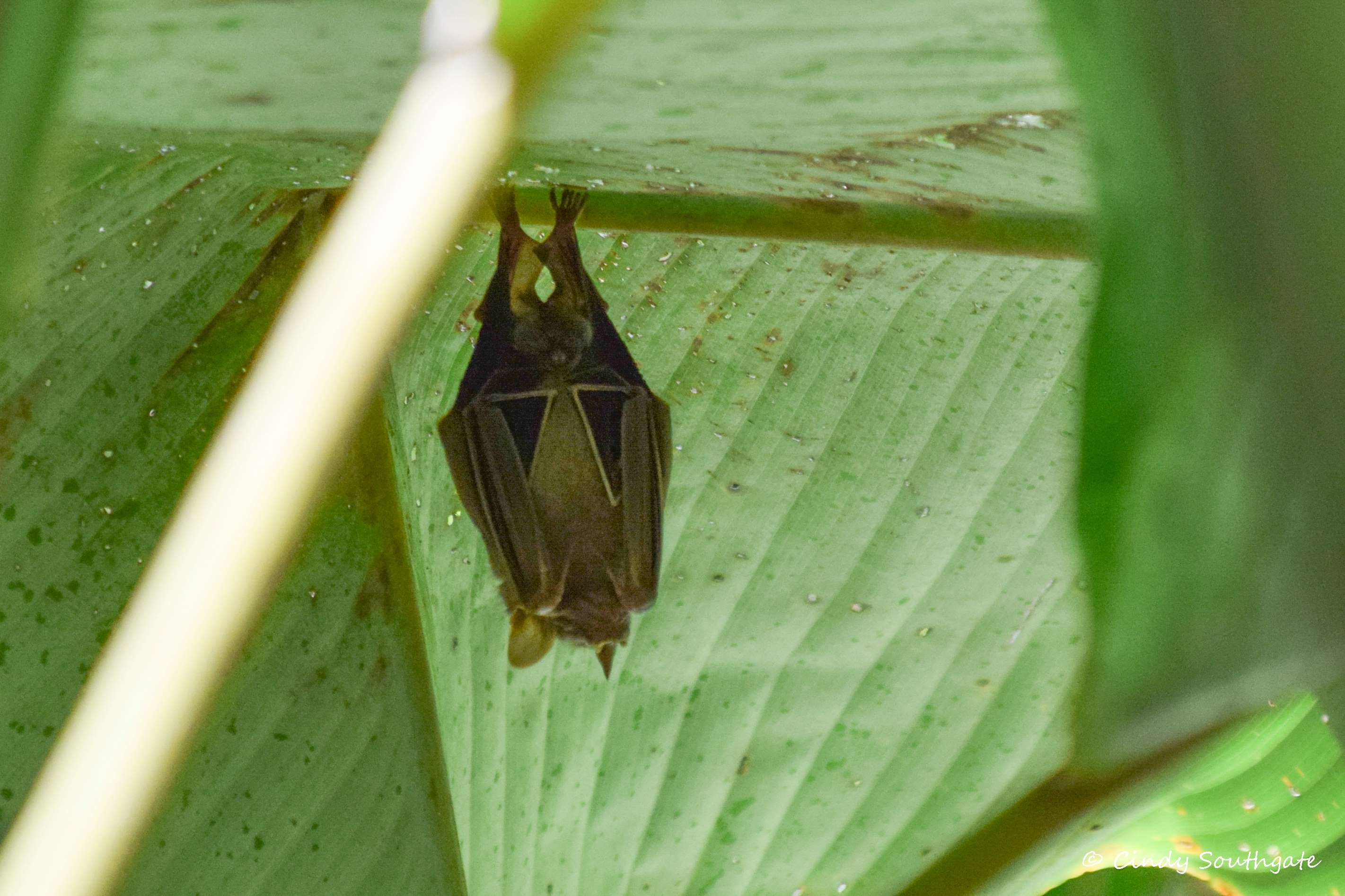 Next, Johan found a Giant False Parrot Snake. They are quite small in girth but can be up to one metre in length. Also nearby, he found this Tent-making Bat hanging out inside a large leaf.