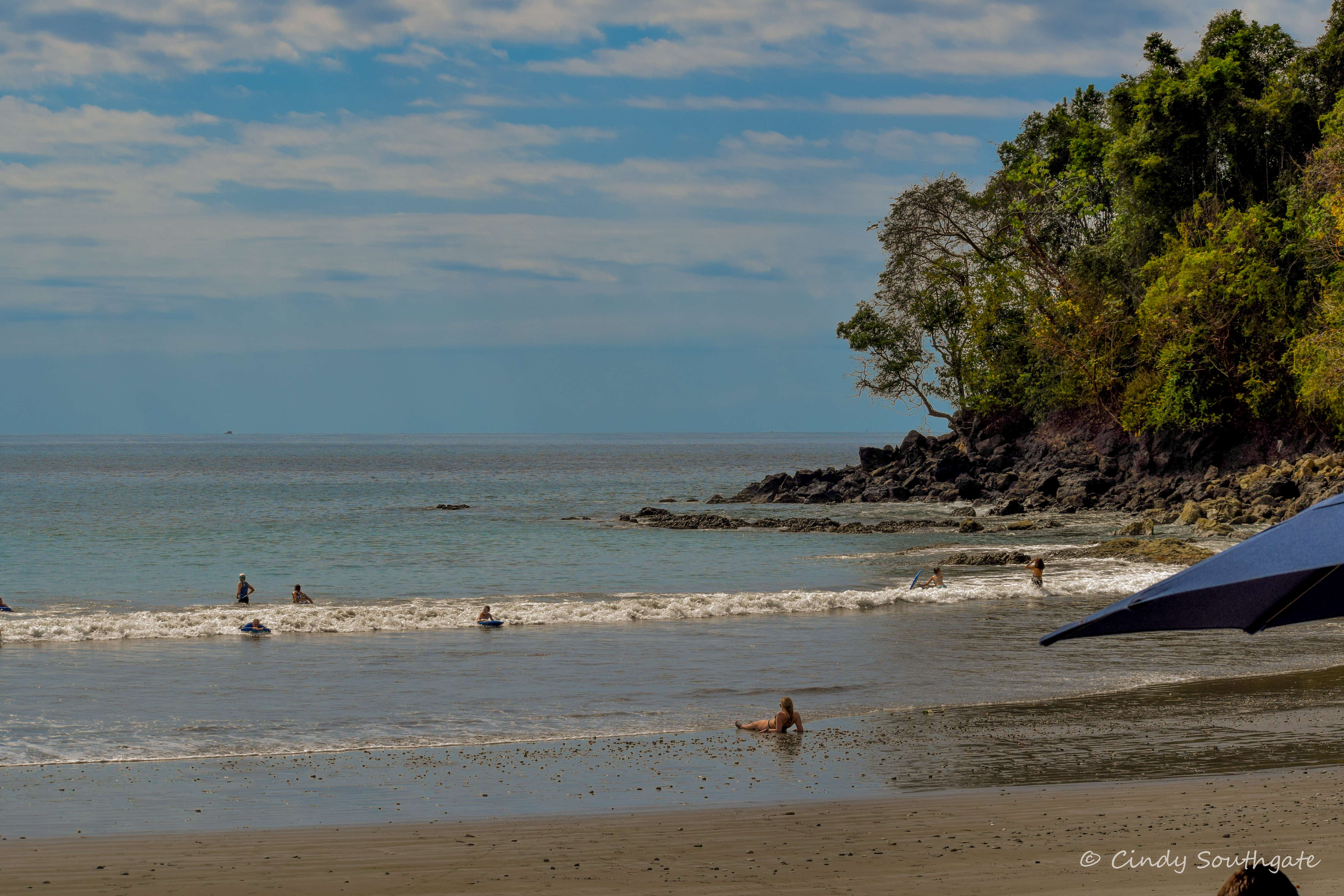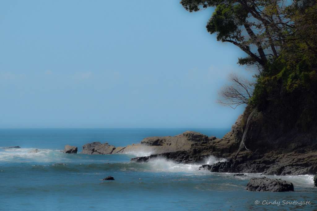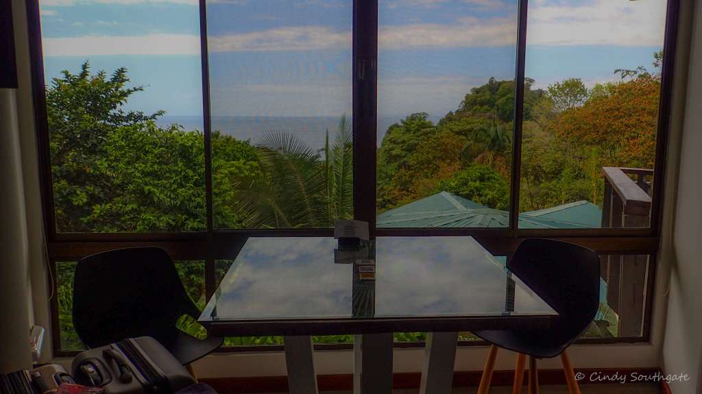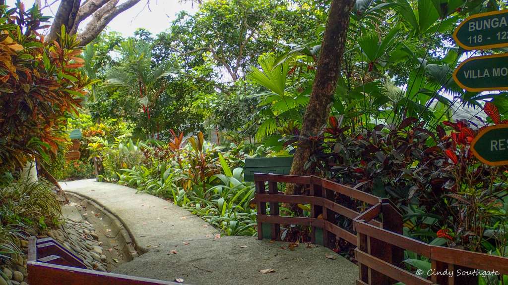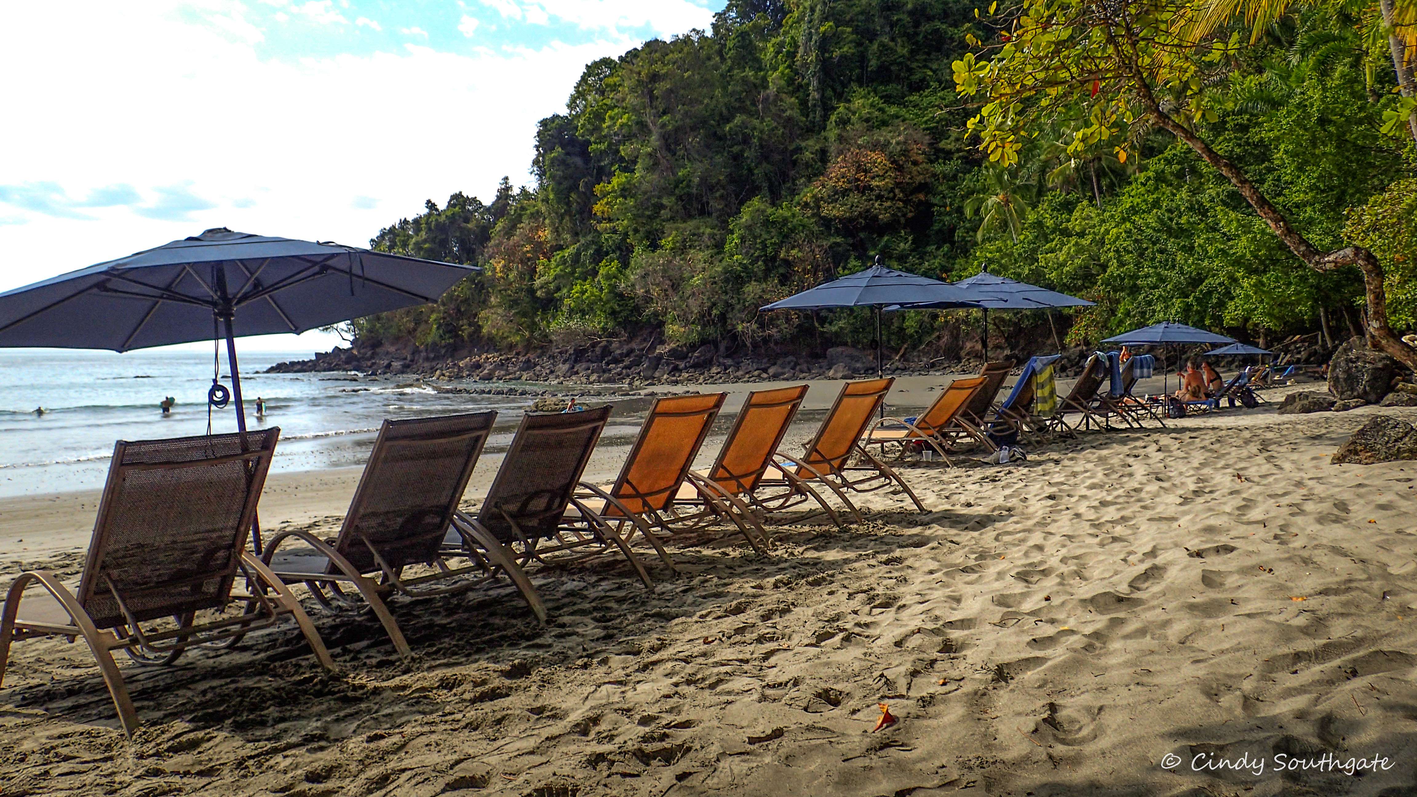 For the rest of the day we wandered around the resort and visited the beach. All beaches in Costa Rica are public but because Tulemar is situated on a fairly steep hill it is difficult to get to unless you are a guest of the hotel. We went in the water twice and found the water very warm. We saw a large Iguana sun bathing on the beach. When we were leaving there was a golf cart going by and they asked if we wanted a lift. We jumped on the back and had to hold on tight while we drove up the hill to move our car to our new location.
