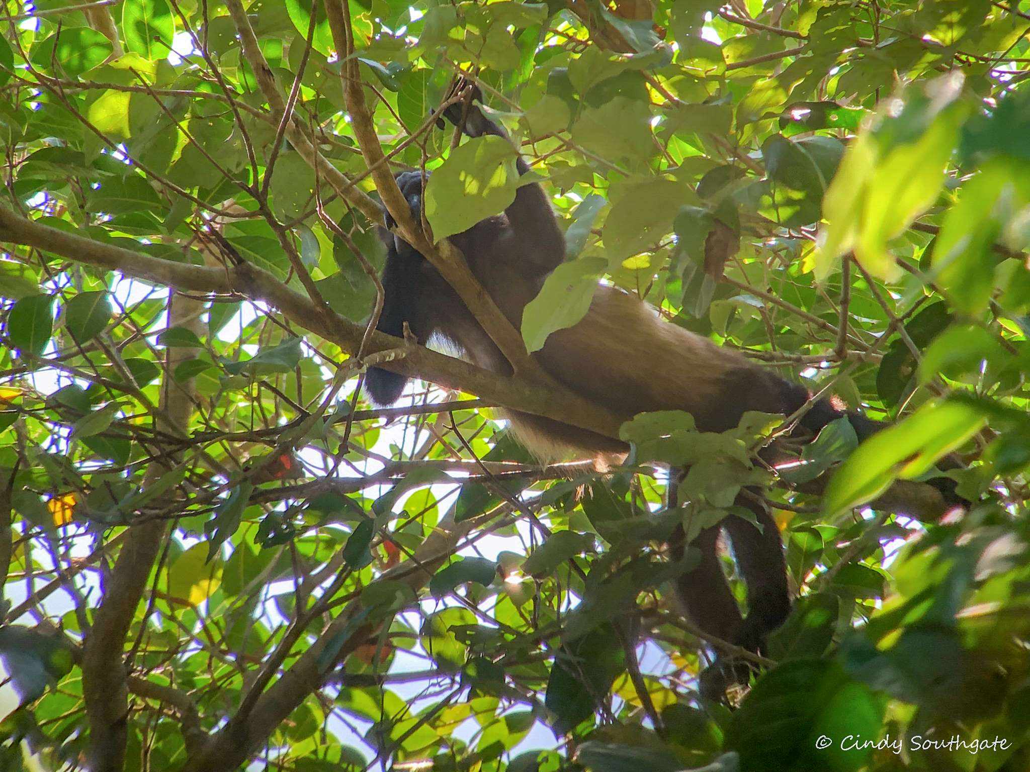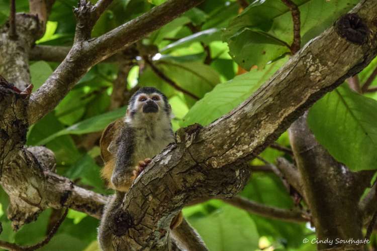 Johan’s spotting skills are phenomenal and he showed us many creatures we would not have found on our own. By combining our phone’s camera with his lens we were able to get some great shots. We started with a couple of bats, a Black Hawk, Green Tree Frog and an Iguana. Iguanas are very large – 130 cm nose to tail tip.