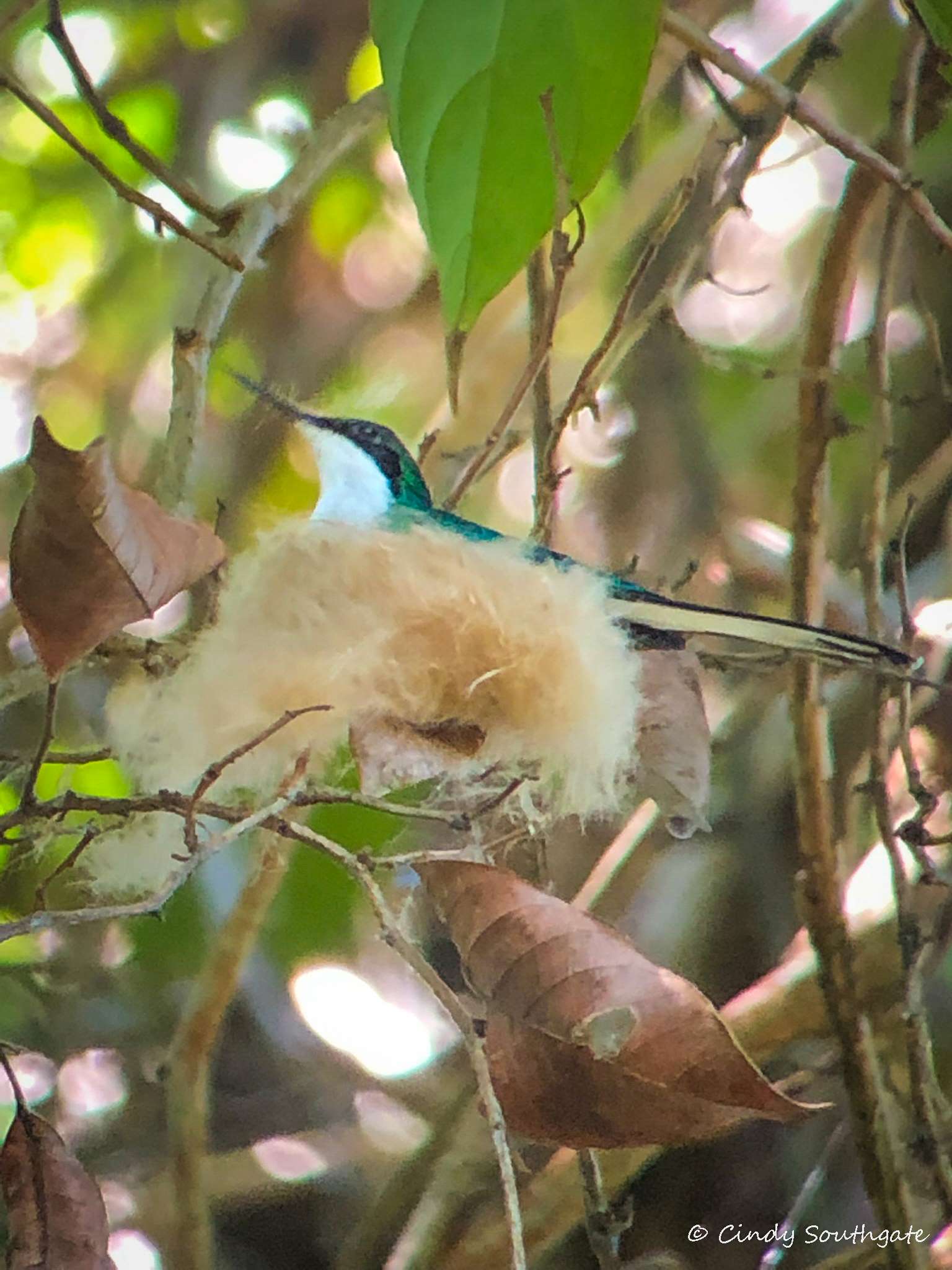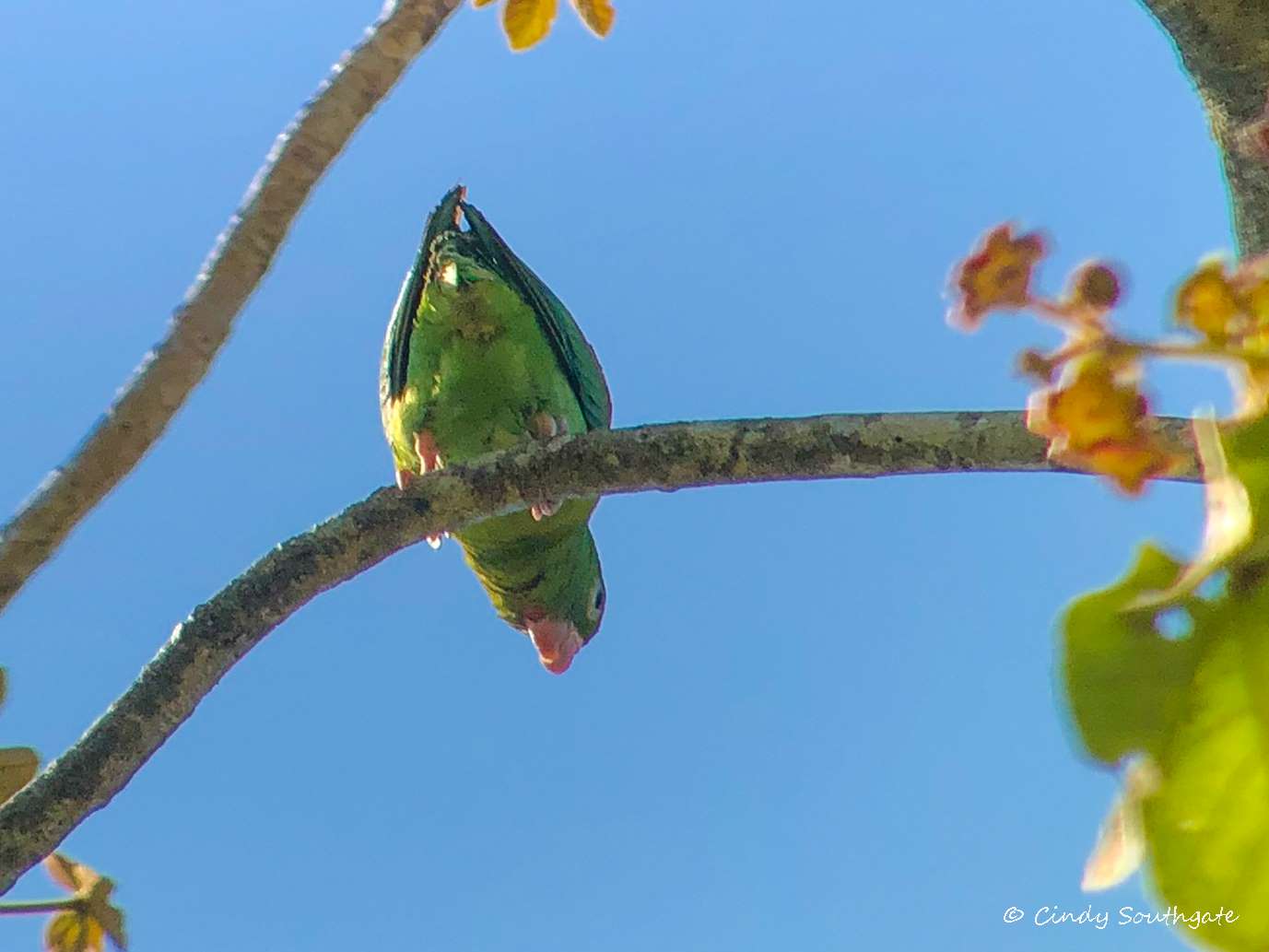 The Orange-chinned Parakeet is the second smallest Parakeet in Costa Rica. It’s always fun to see the more colourful birds. We were lucky to see the uncommon Purple-crowned Fairy Hummingbird visiting its nest.