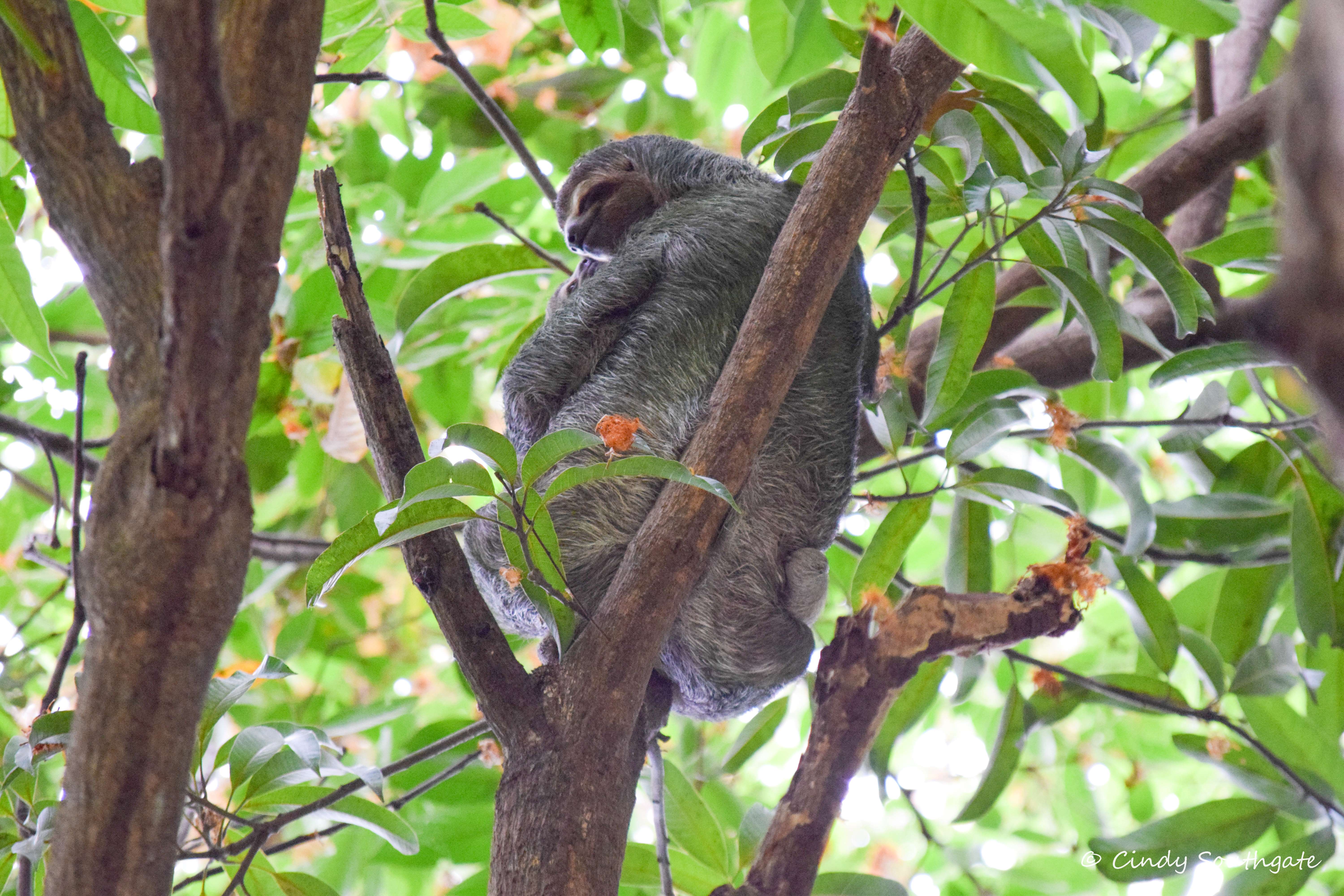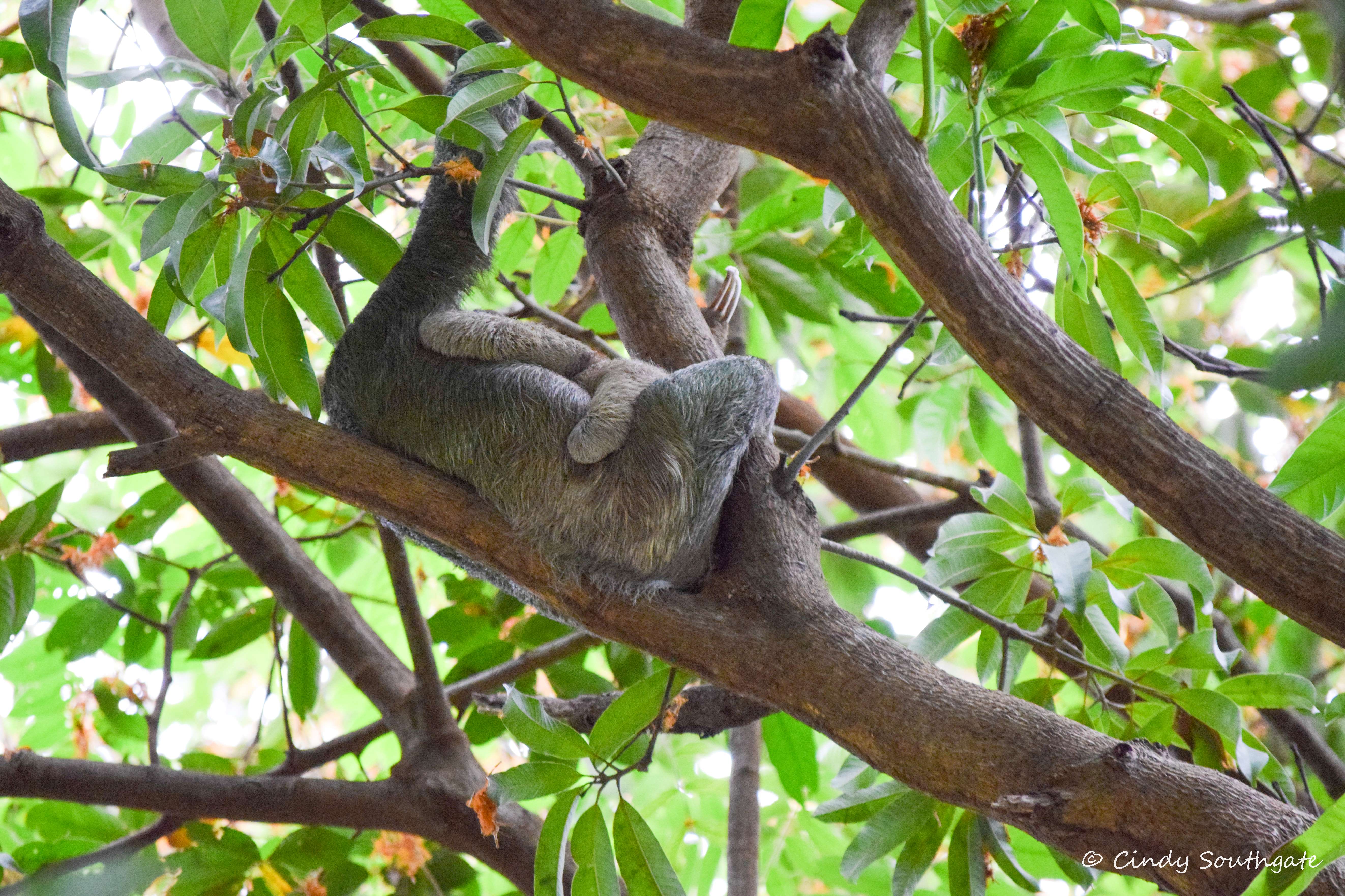 We had a good view of this Three-toed sloth with her baby. The Sloth Institute is on Tulemar’s property and there are several sloths living here. They have a tour most mornings but it is only available to hotel guests. We took part the first time we stayed here.