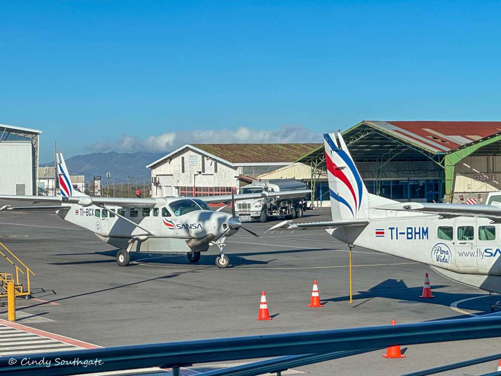 We woke up early and headed downstairs for the included breakfast. Then we hopped on the shuttle to head over to the domestic airport where our tiny plane was waiting for us. We arrived one hour before our 8 a.m. flight and checked in. We were given laminated boarding passes that are reused by all their passengers. (Similar to the South Pacific where I lost mine by using it as a bookmark – they let me on anyway.) When the plane was ready for boarding they called us over by our first names only. We started this trip in Puerto Jimenez. It would have been a 7 to 8 hour drive to get there and it was actually cheaper to fly than hire a driver. It cost $240 for both of us and was a 50 minute flight, so as an added bonus, we would have the whole day there.