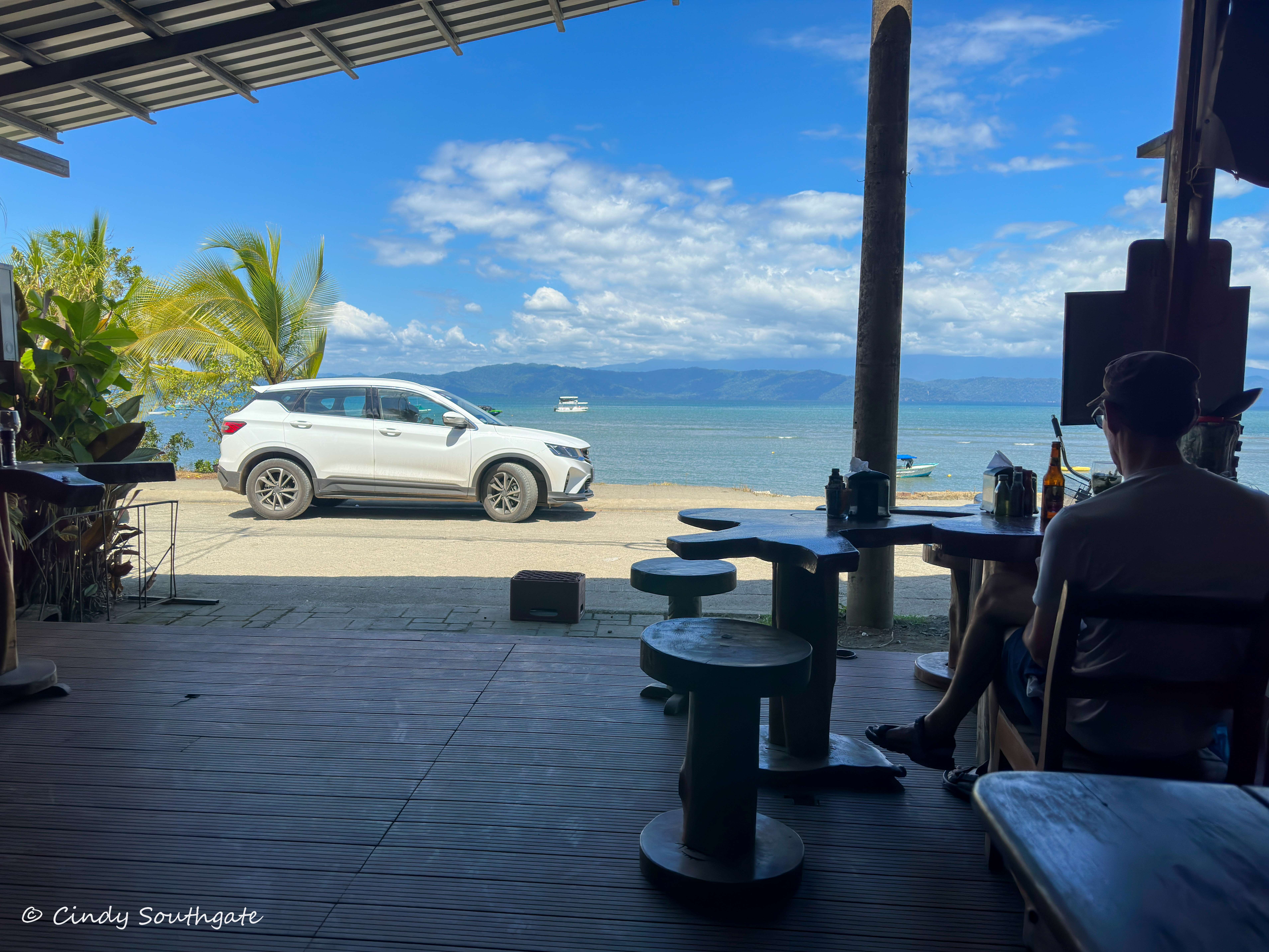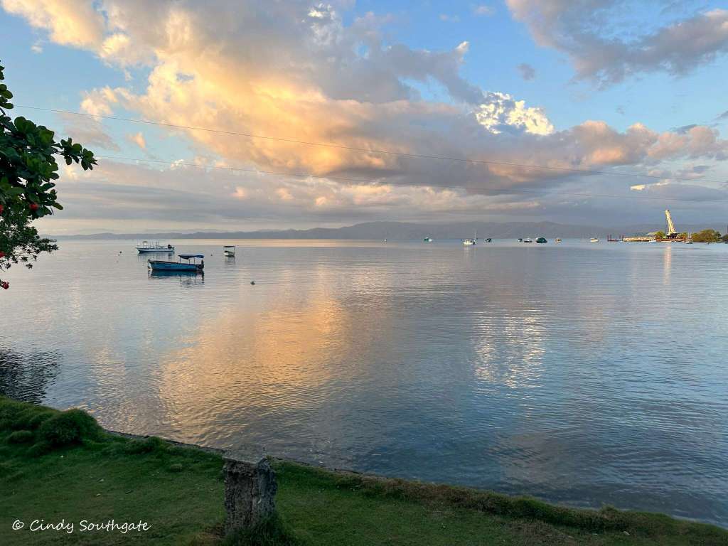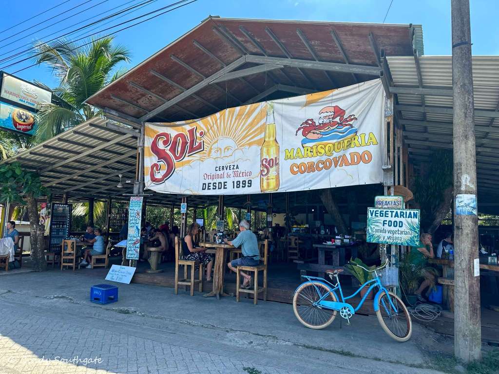 After lunch we wandered around the small town and picked up some cereal, yogourt and drinks for breakfast the next morning. Then we spent a bit of time on our covered Kitchen / deck reading and relaxing while enjoying the view of the Golfo Dulce. (i.e. “Sweet Gulf”)