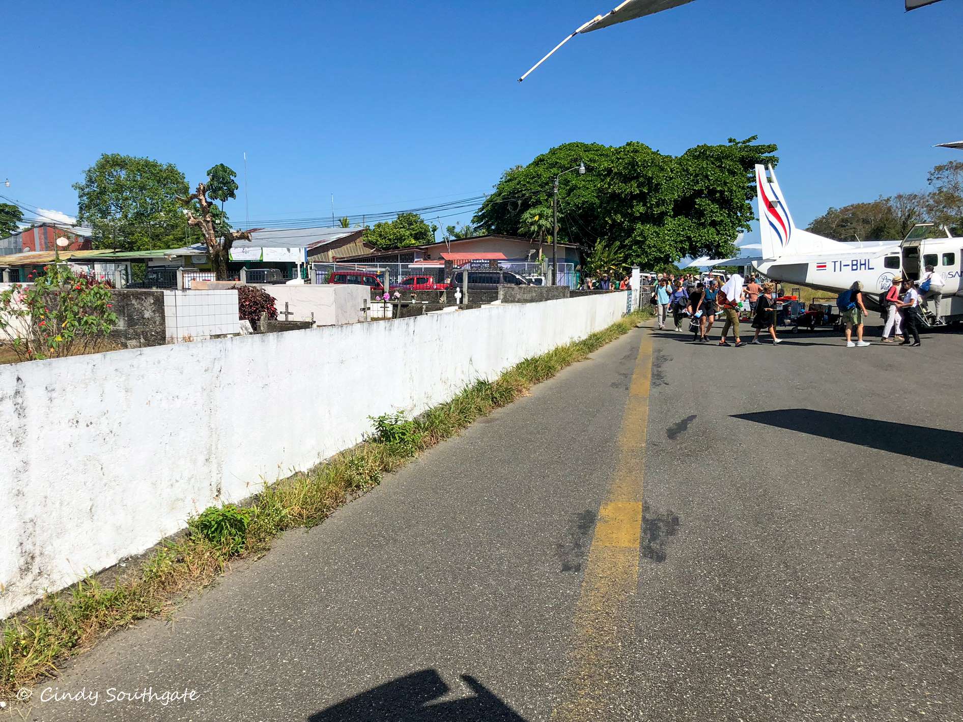 Landing was a bit of an experience. We came in very low over the beach and it felt like we were going to land in the trees. The “airport” there consisted of a small runway surrounded by a fence. Other passengers were waiting outside to board their planes.