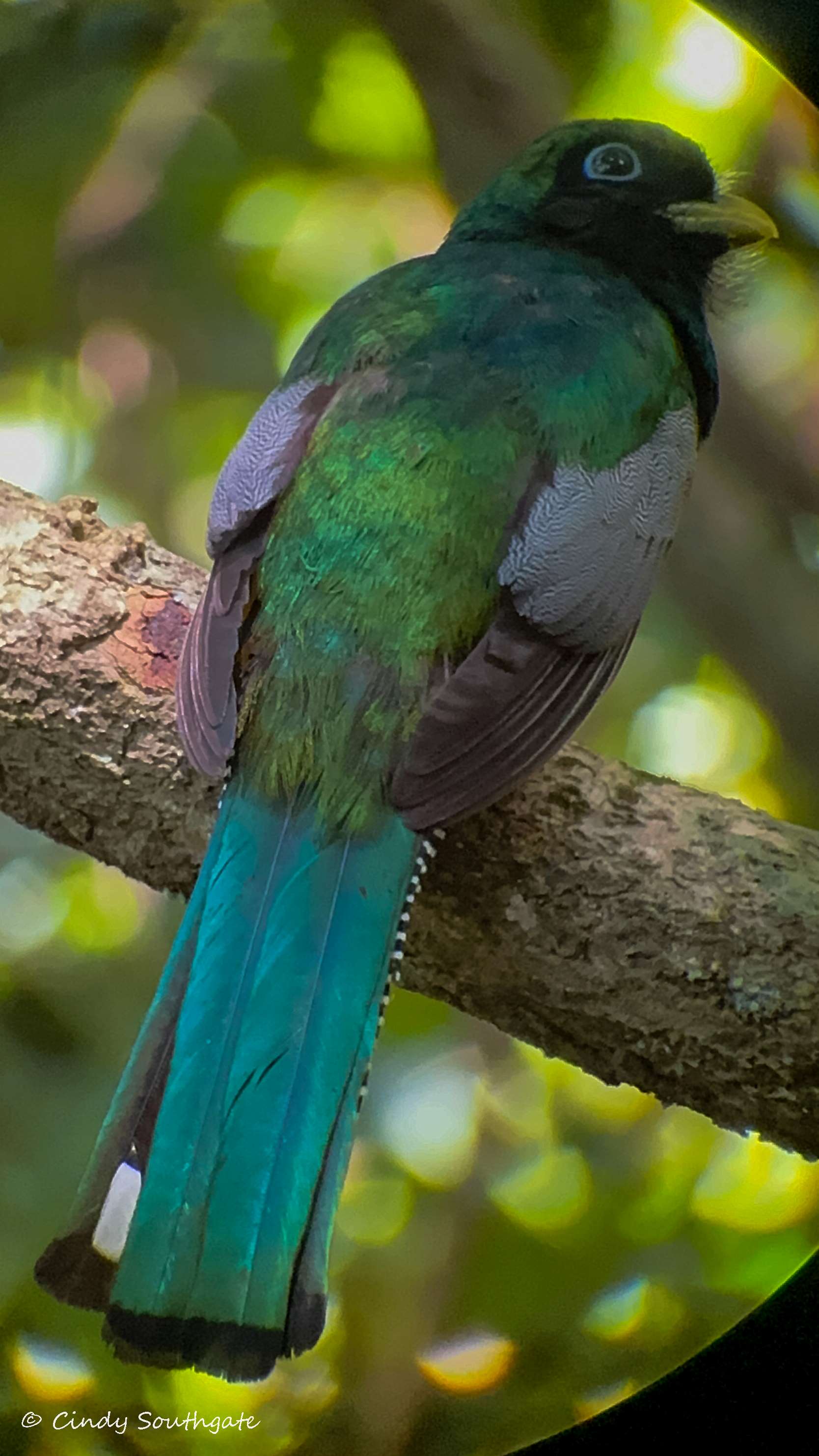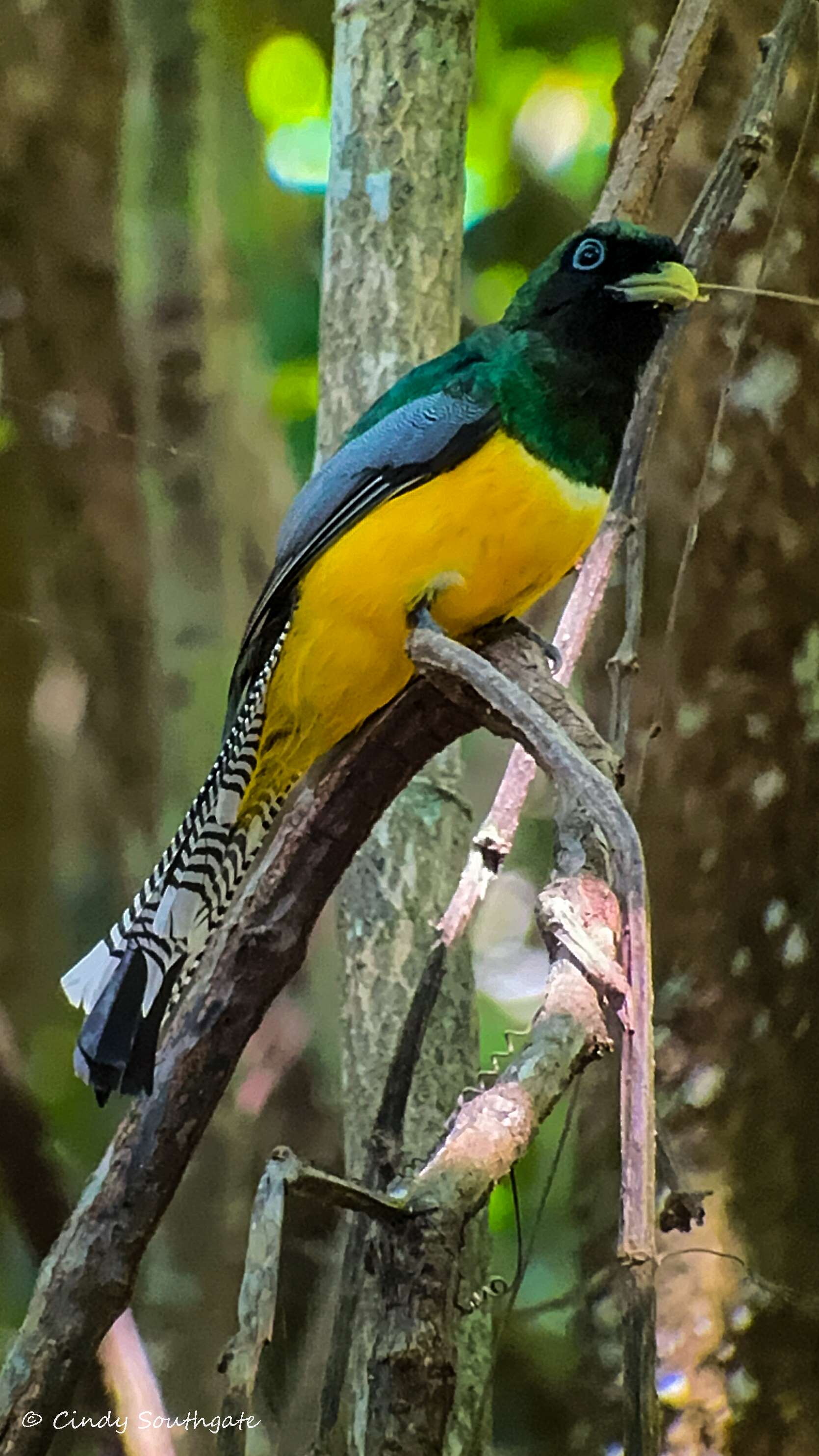With the help of our guide’s scope, we got a picture of this beautiful Trogan. He was enjoying a cricket.
