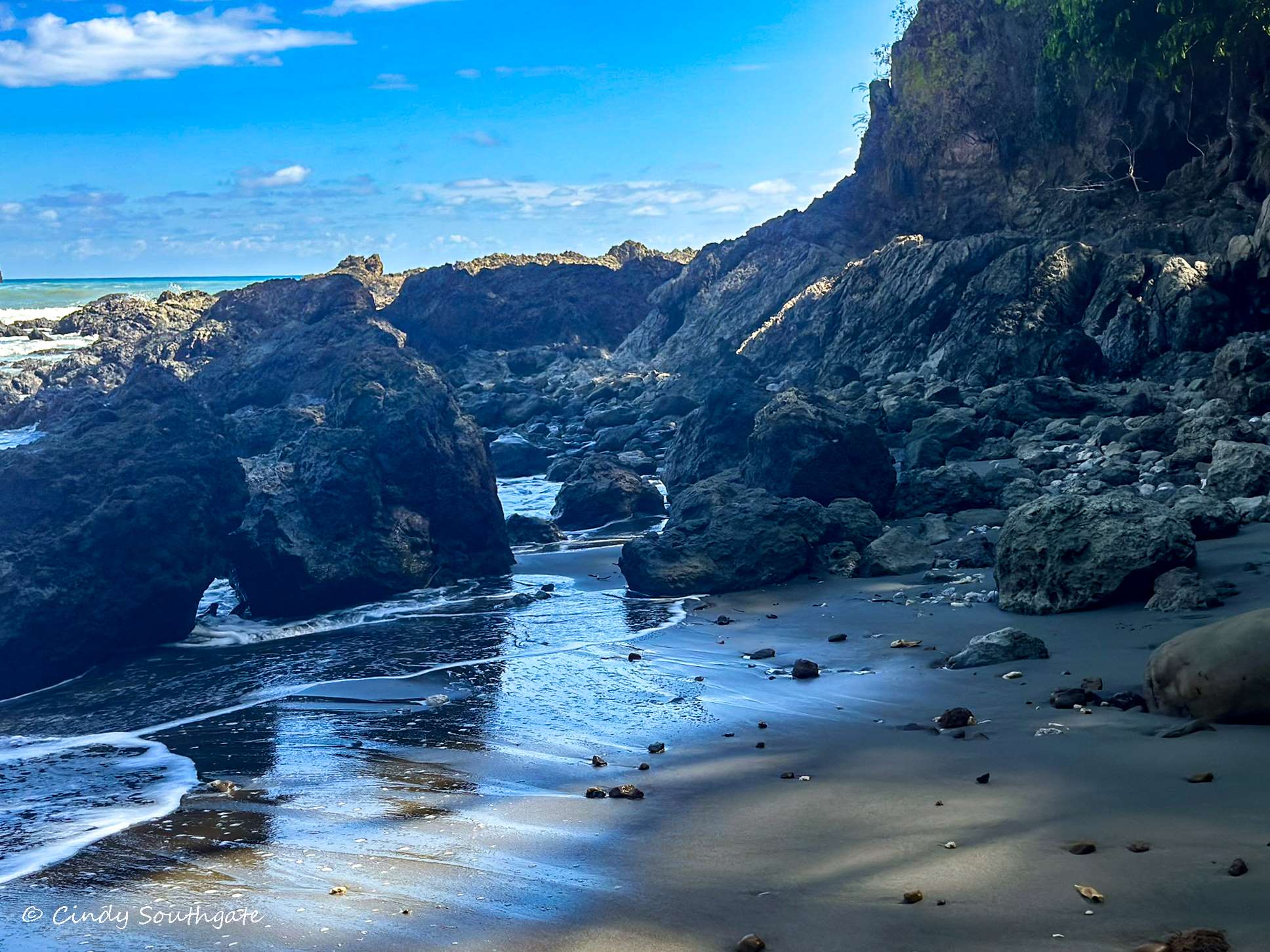 The rivers flowing into the ocean were very picturesque. The water was low so it was very easy to cross. None of them were deep enough to get our clothes wet.