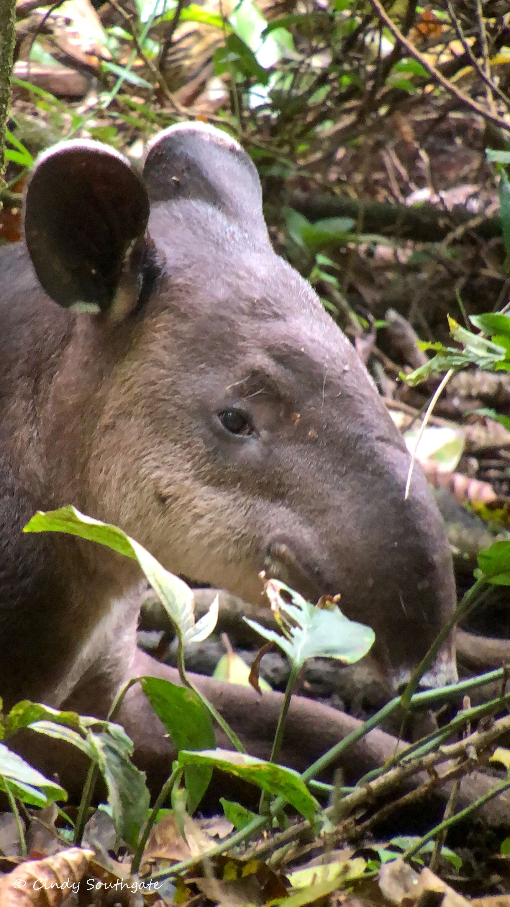 We spotted a group of 5 Baird’s Tapirs, including a mom with her baby. Our guide said it was unusual to see that many in a group. They are the largest mammal in Costa Rica weighing up to 880 lbs. They have a long flexible snout used to gather leaves and stems.