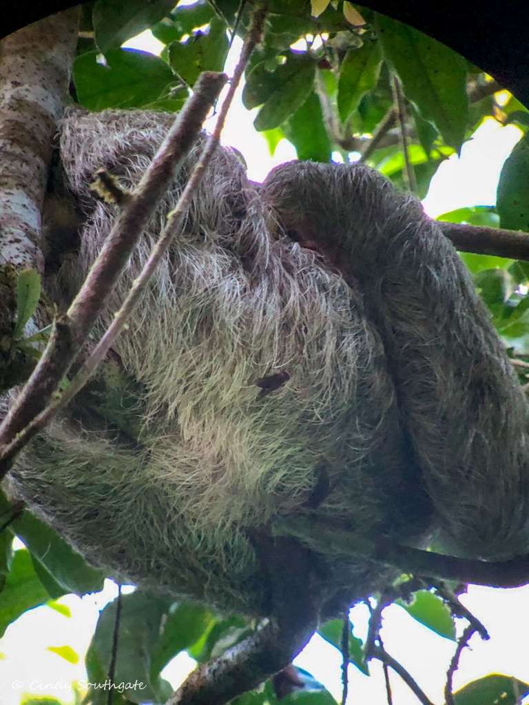 We also saw a sloth. They can be hard to spot as they tend to stay quite high up in the crooks of tree branches.