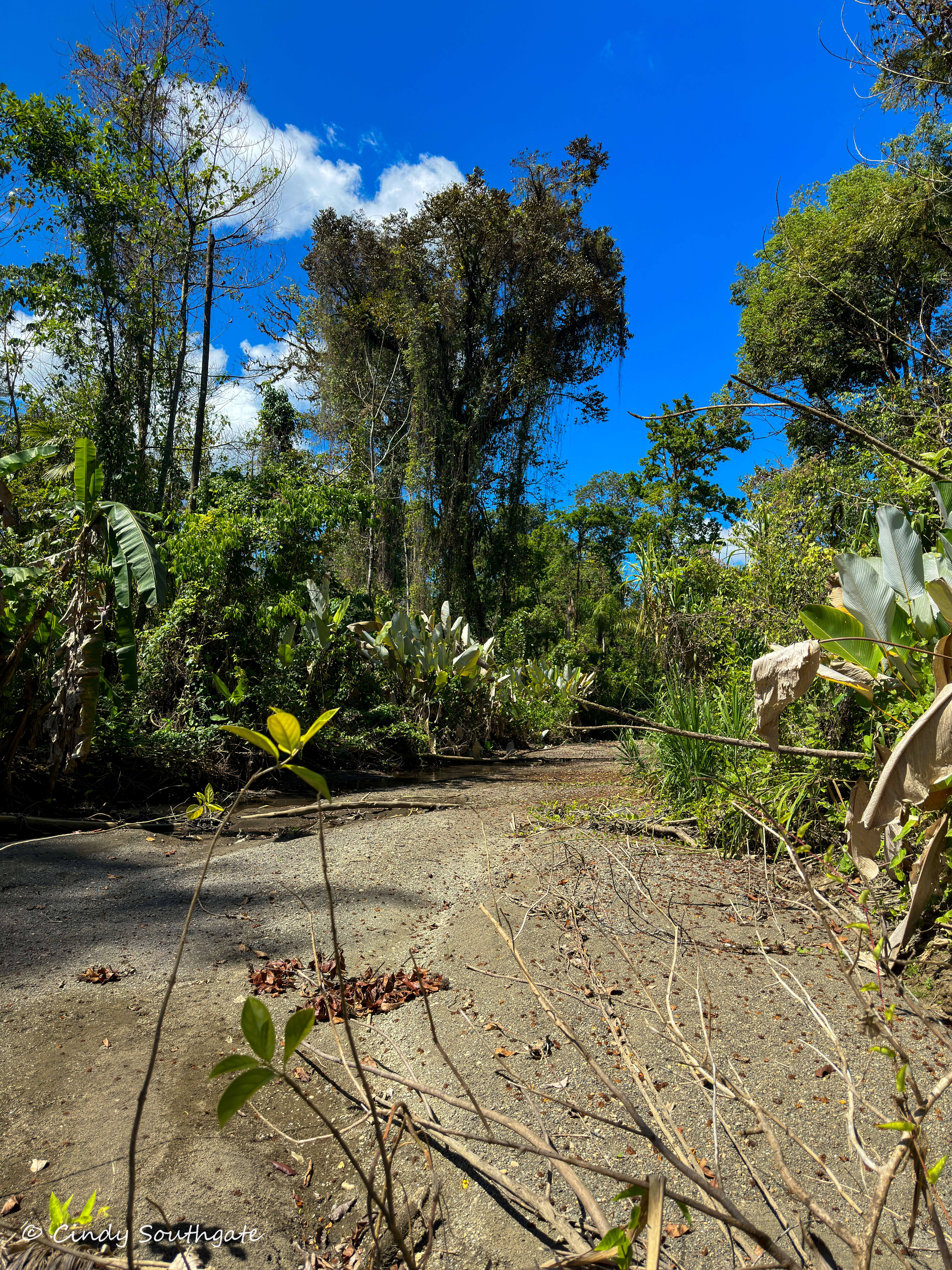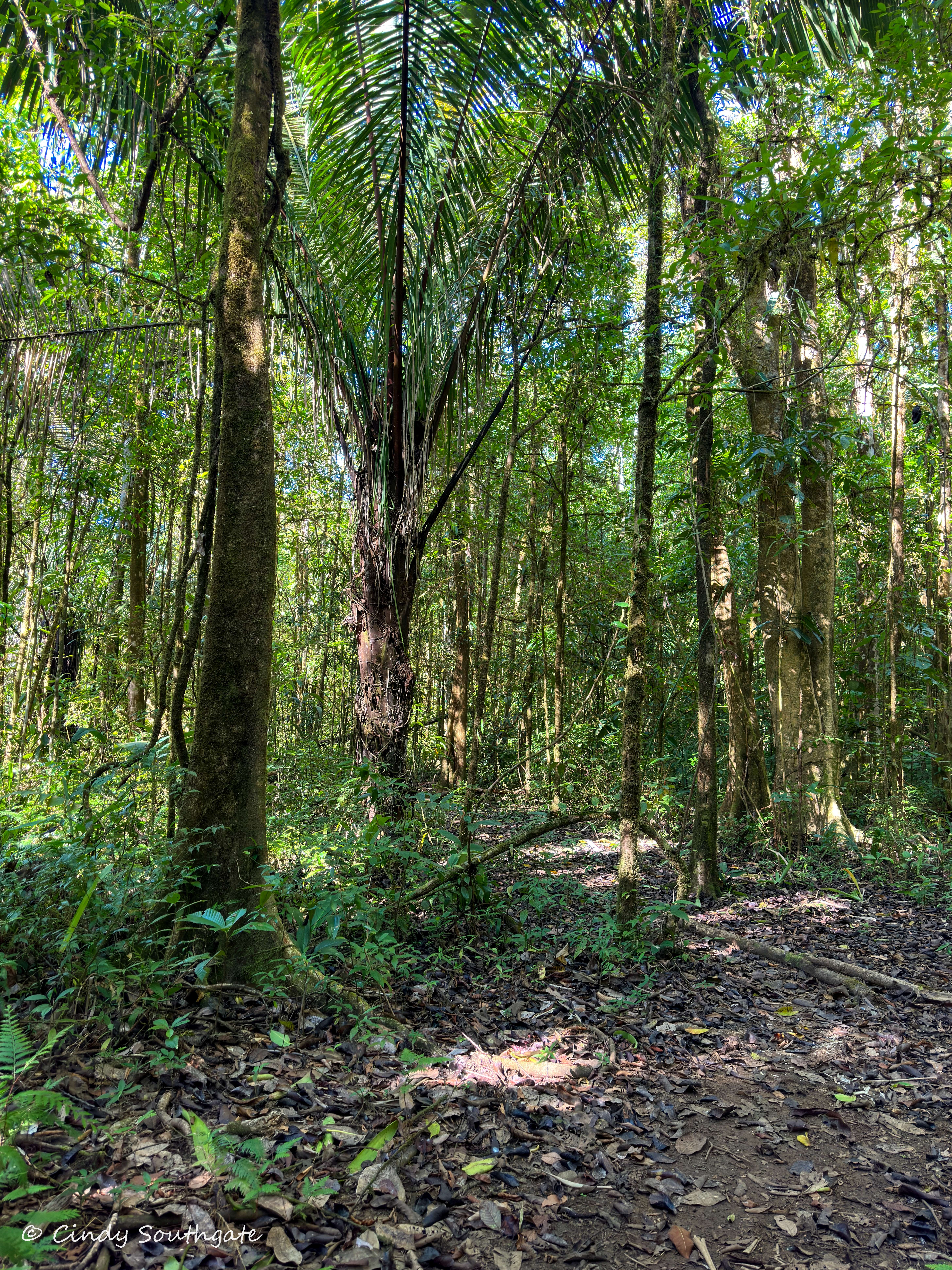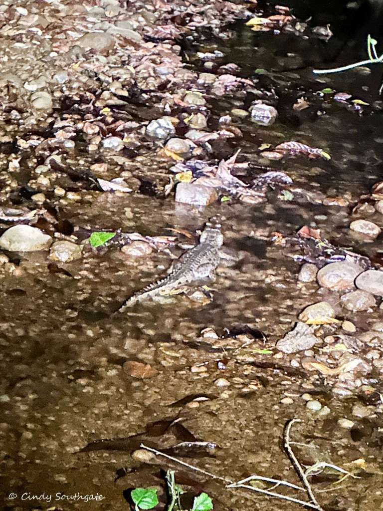 I did not have a good night’s sleep. I heard some kind of wild cat and some other unidentified animals. We got up at 4 am and packed our food and filled our water containers. I had a 2 litre hydration bag in my backpack and one hand held bottle. We crossed paths with this Caiman early on in the hike.