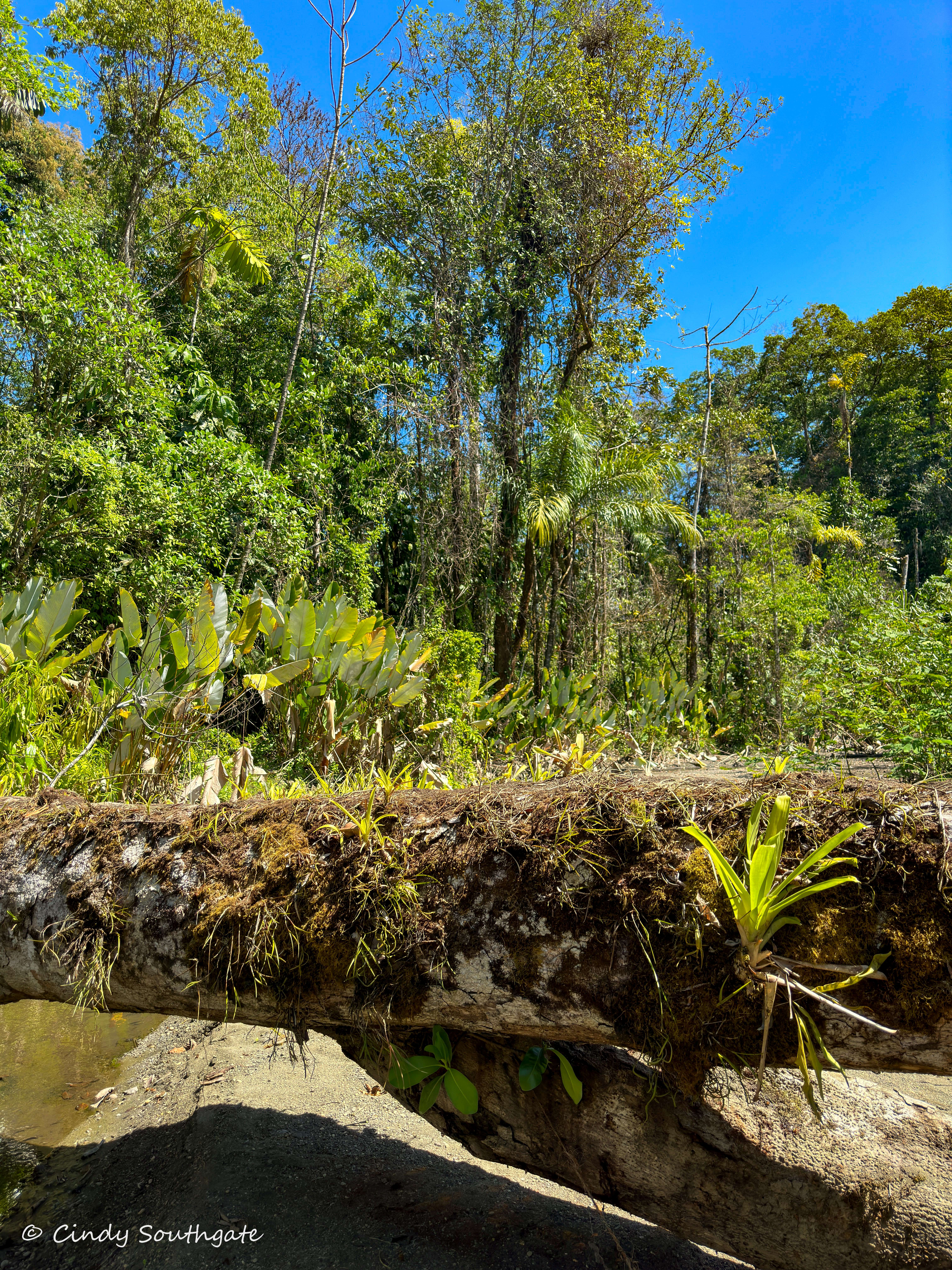 One of the rivers had a big tree lying across it, but it was covered in slippery moss and epiphytes. We crossed it carefully, trying not to damage the plant life growing on it, while also not falling into the river.