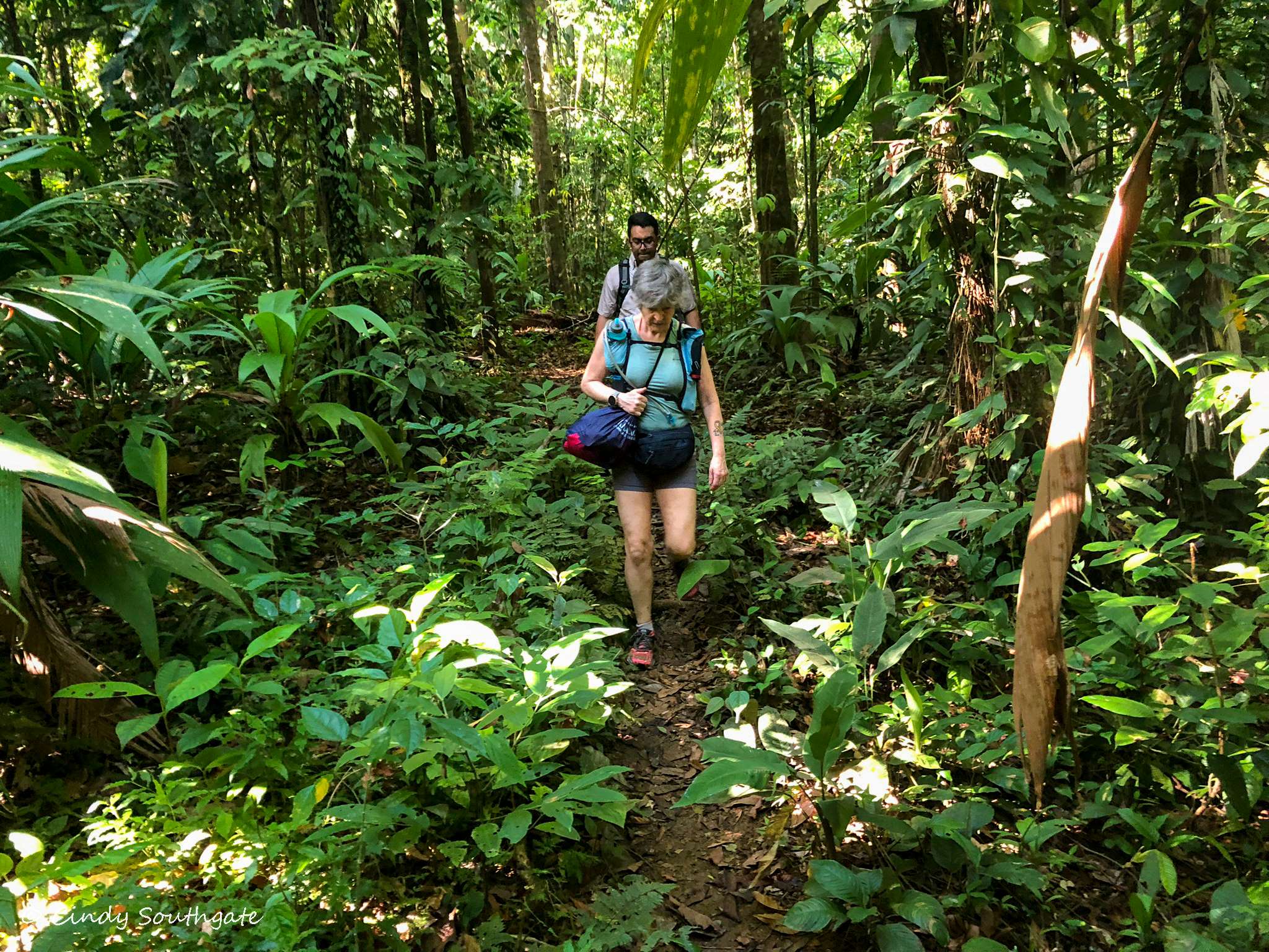 It was very hot and humid and I was glad we had decided to wear shorts. It was recommended that we wear long hiking pants in case of ticks, but we had worn them on a night tour once and found that they stuck to our legs, even though they were made of thin technical fabric. Instead, we put some insect repellent on our legs.