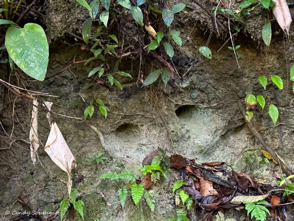 These holes are likely being used by a mother Agouti. They hide their young in small holes to protect them from predators while they’re out searching for food.