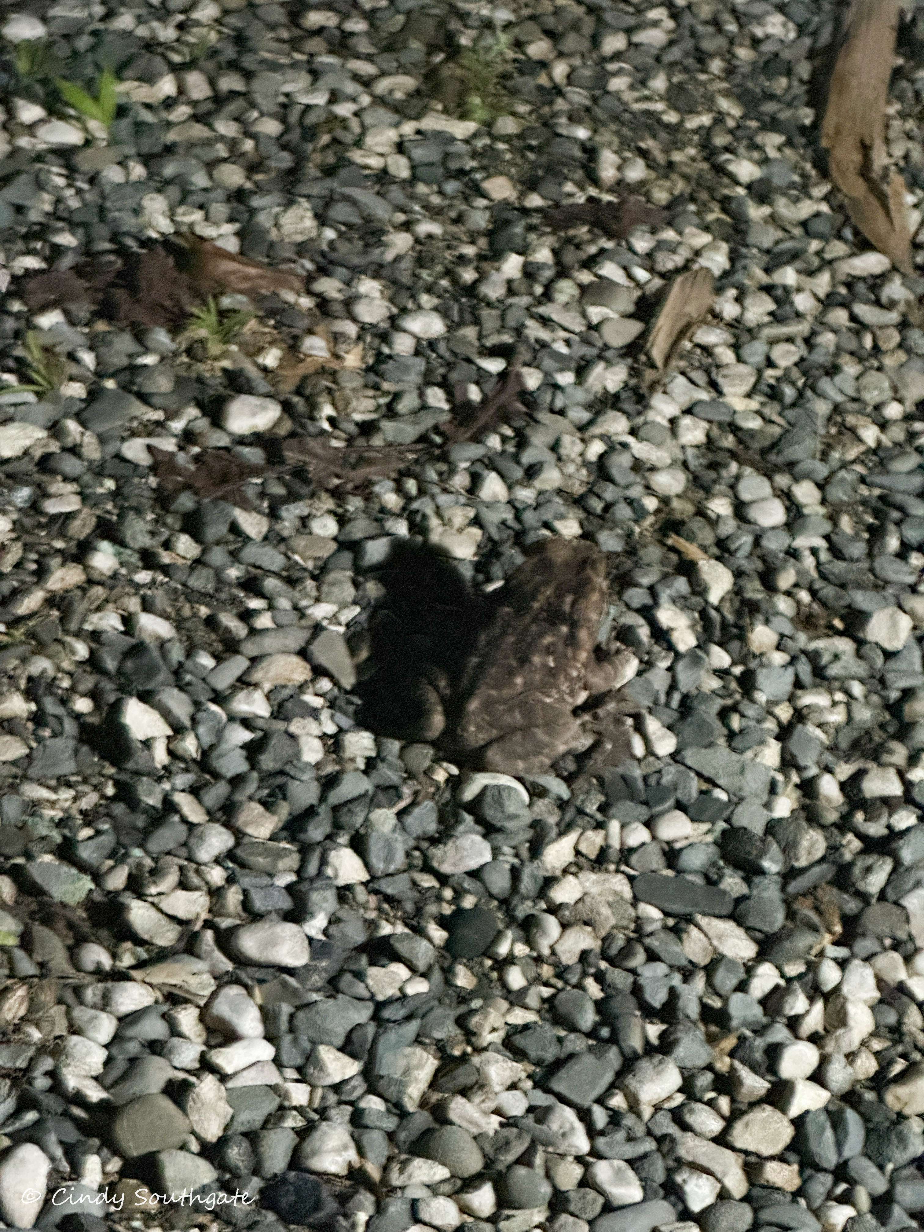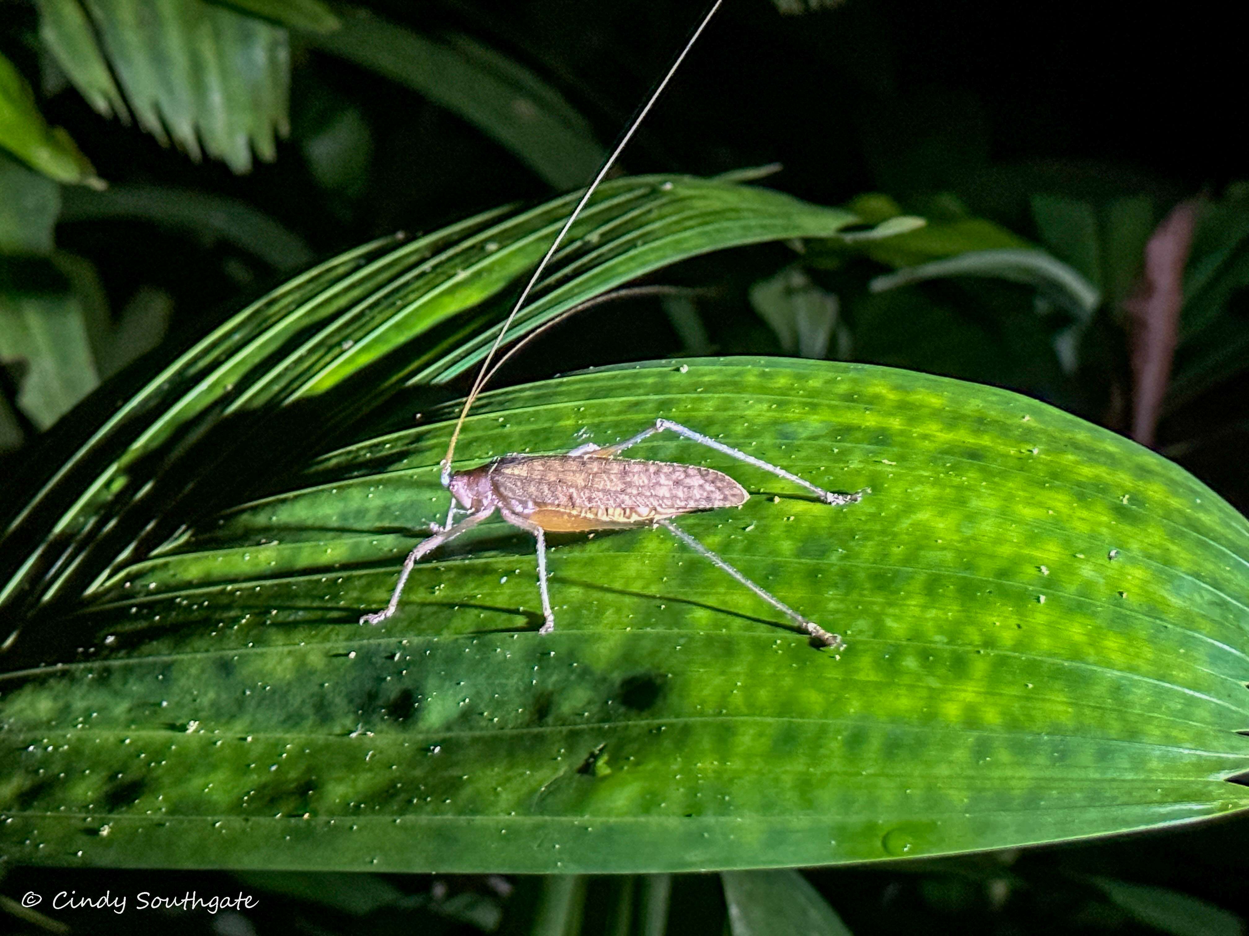After dinner we got dressed for our night hike. We had to wear rain boots to protect us from possible snake bites. On our way down I spotted this large Cane Toad. The females can grow to 9 inches long. They are carnivorous and very poisonous, carrying enough toxins to kill large mammals and even humans. Their eggs as well as tadpoles are toxic as well.
