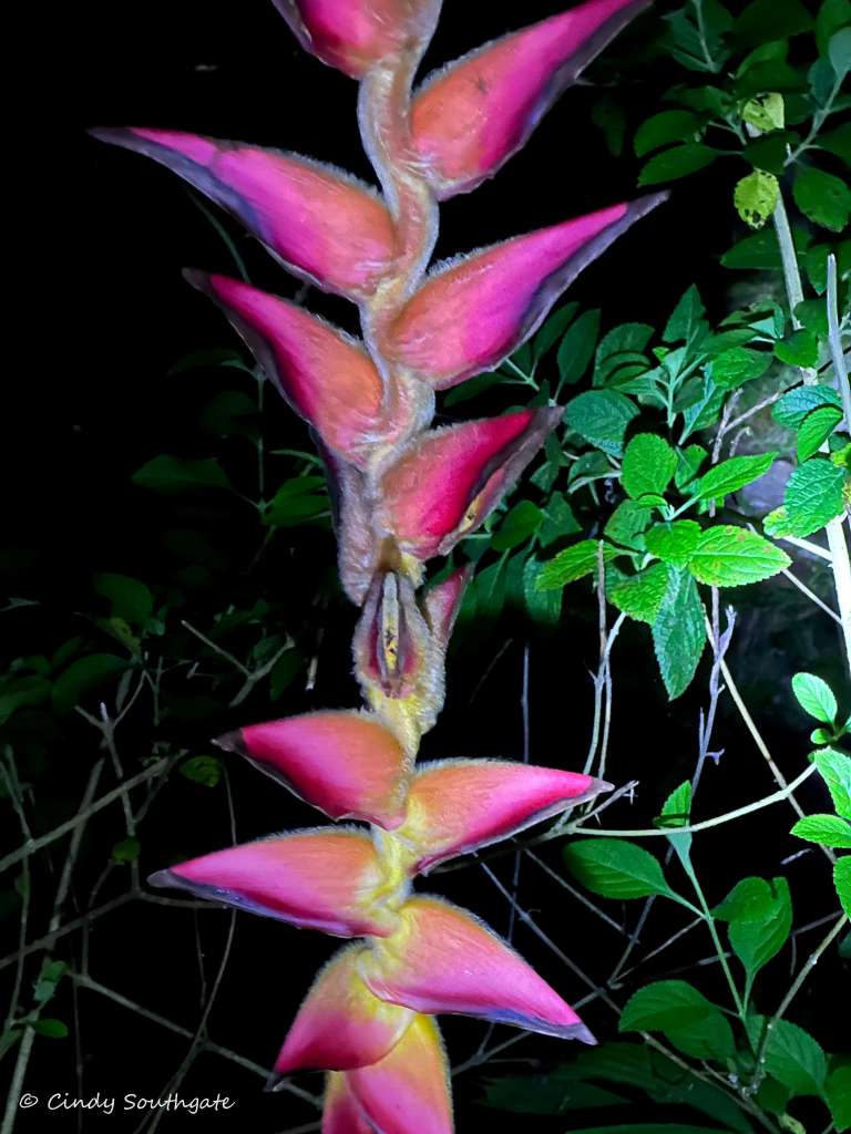 The Heliconia plant is quite stunning with its vibrant pink flowers. They are the perfect nesting site for Hermit Hummingbirds.