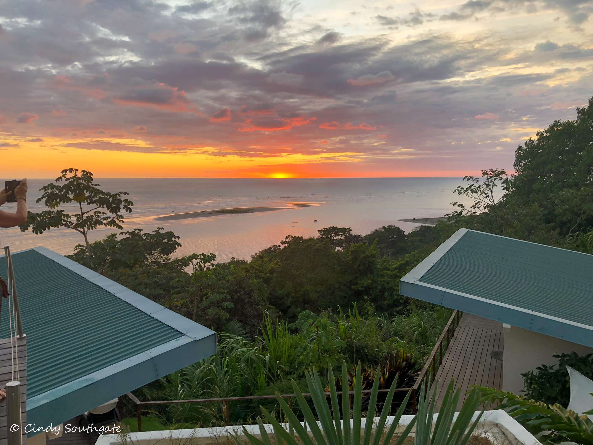 This is a picture of our hotel taken from the beach. Our suite is the small building on the left peeking out from behind the tree.