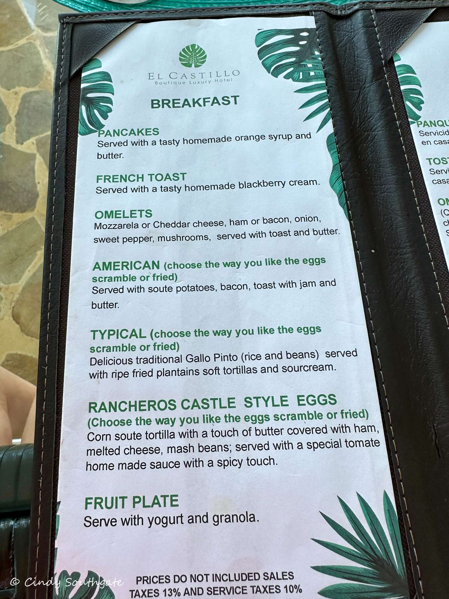 Breakfast always started with a fruit plate followed by our choice from the menu. Even though I’m not a big fruit fan when at home, I really enjoy the fruit in Costa Rica. It is always fresh and flavourful. I loved the Rancheros eggs, but in my opinion, you can’t go wrong when avocado is involved.