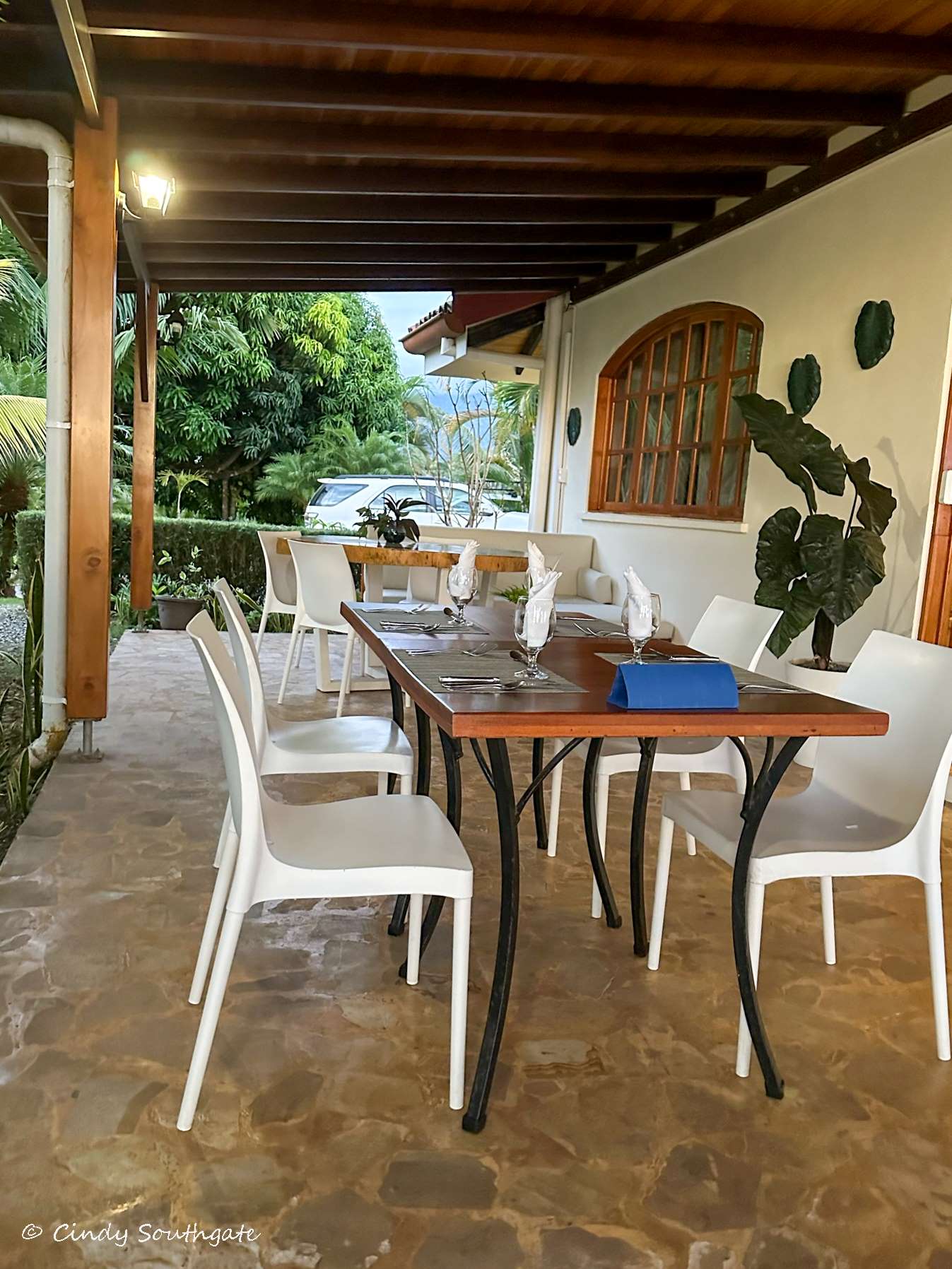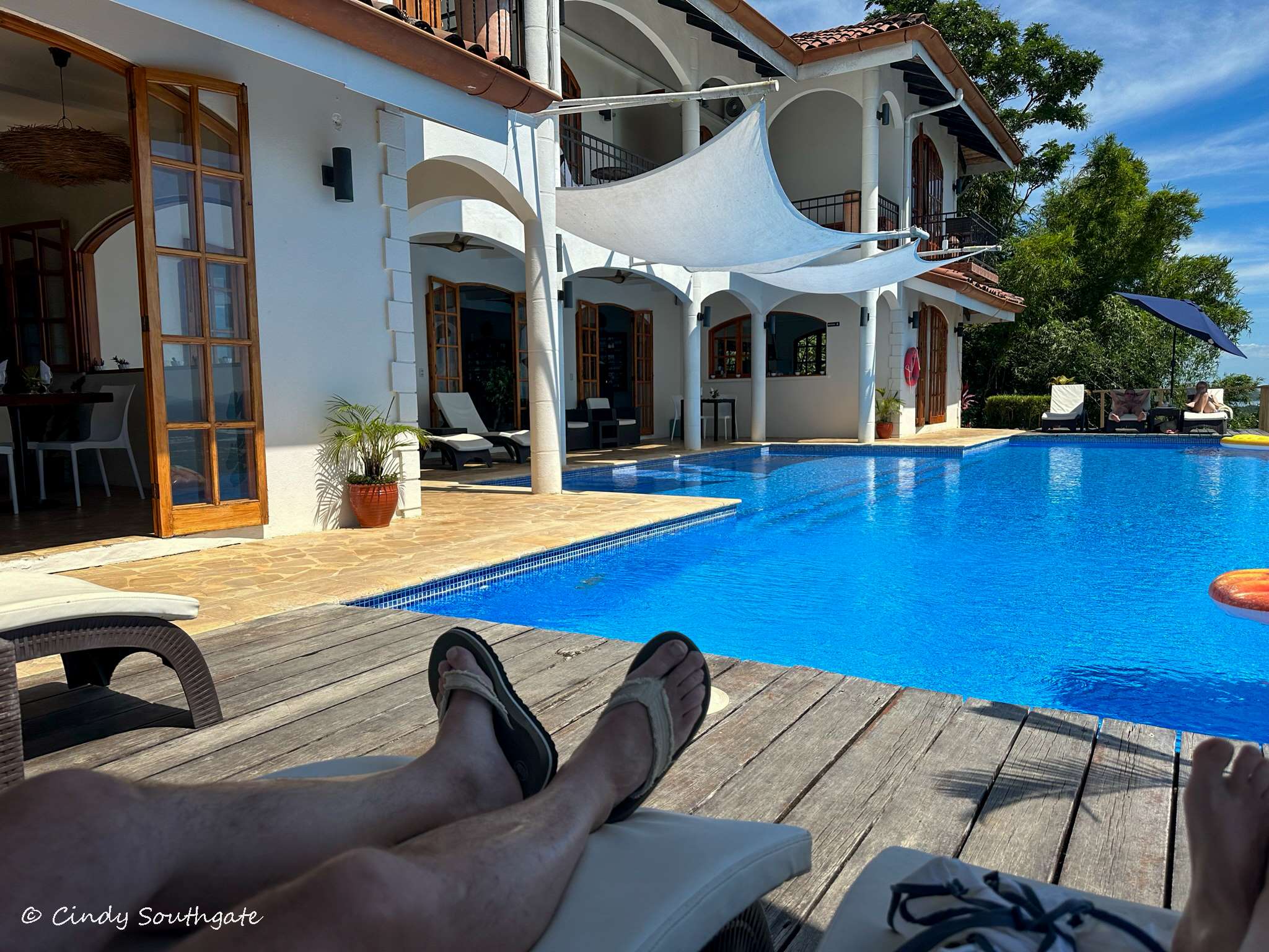 With our tours cancelled, we now had a couple of days to relax. We started the day with breakfast at one of the two cute tables for two that were tucked into the corners of the pool patio. We had several options to chose from – breakfast was included with the price of the room.